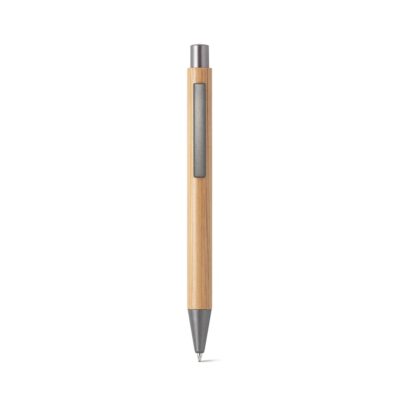 NICOLE. Bambusowy długopis z klipsem i metalowymi elementami