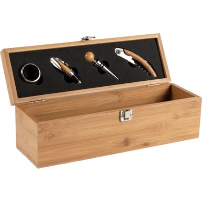 Bambusowy zestaw do wina, 4 el., skrzynka do wina