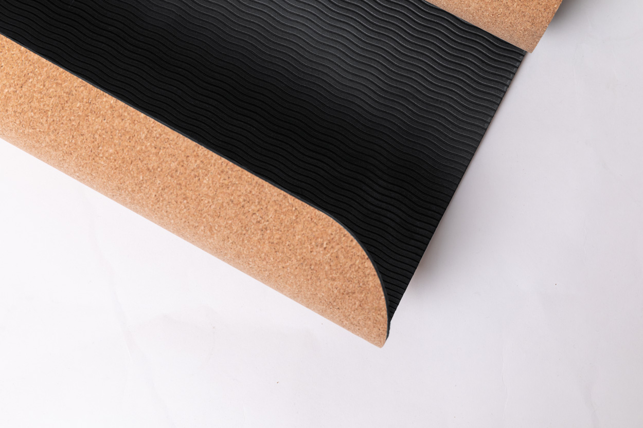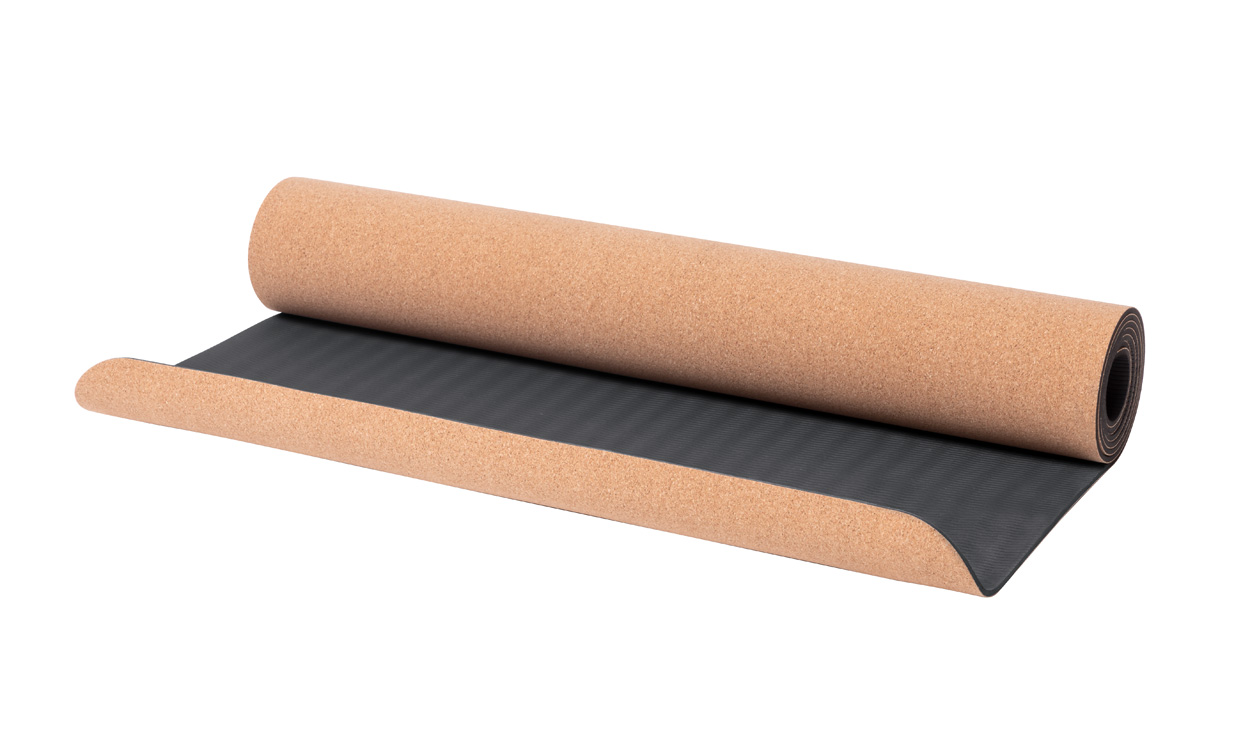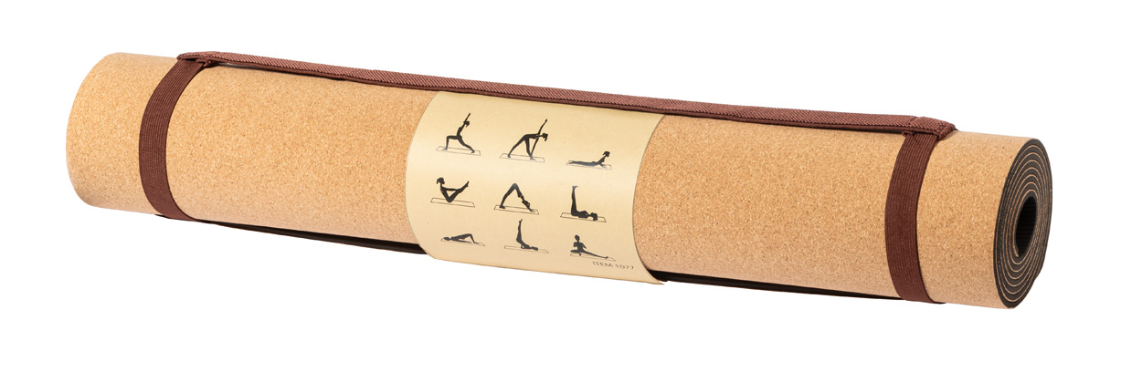 Mata do jogi z naturalnego korka z rękawem z papieru kraft i paskiem do noszenia.
