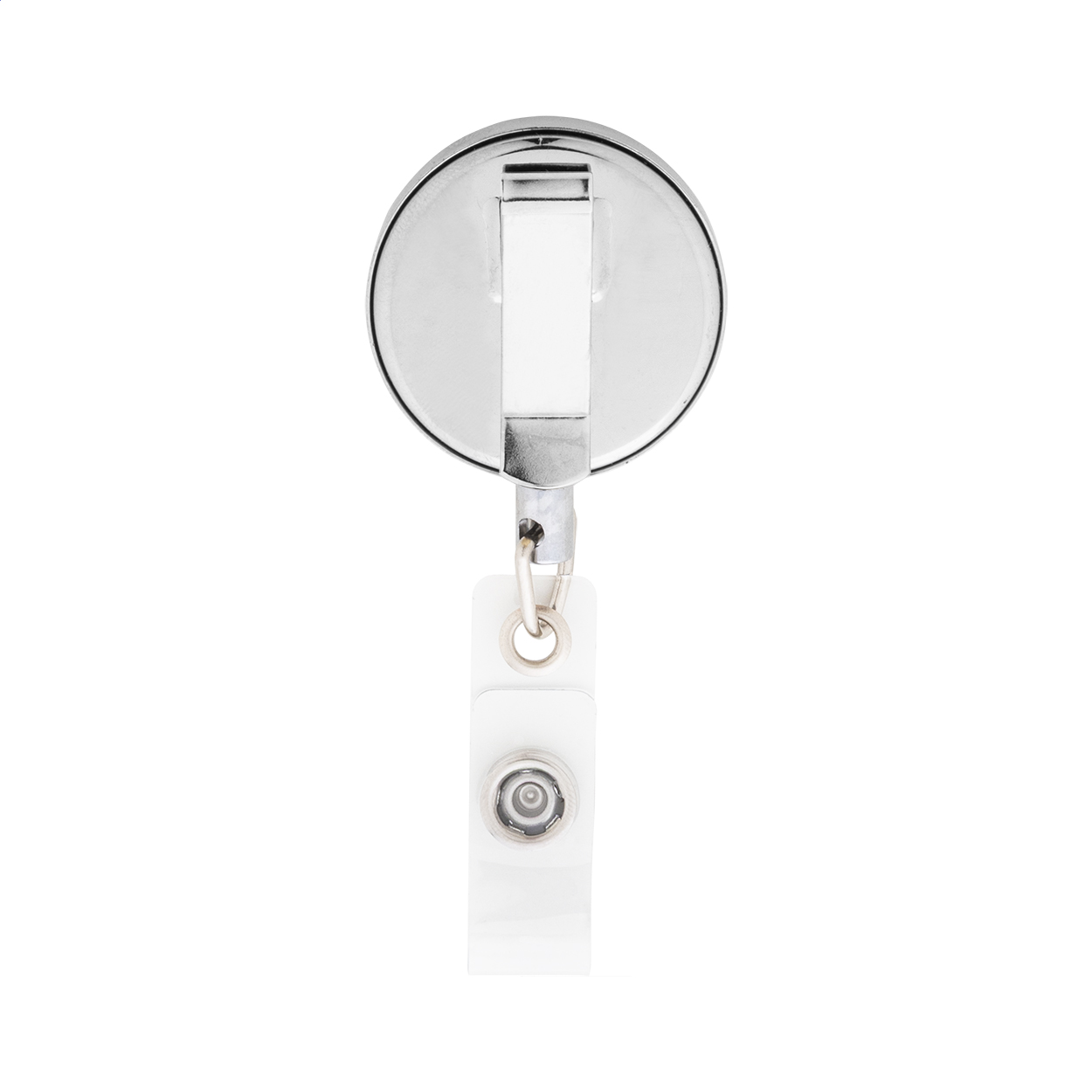 Ekskluzywny metalowy uchwyt na identyfikator z połyskującym metalicznym wykończeniem. Zapinany na zatrzask, z teleskopową linką i metalowym klipsem.