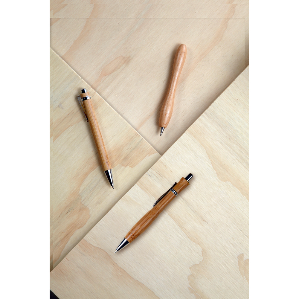 Długopis z trzonem wykonanym z bambusa, metalowe elementy, wkład w niebieskim kolorze, produkt wykonany z bambusa i metalu