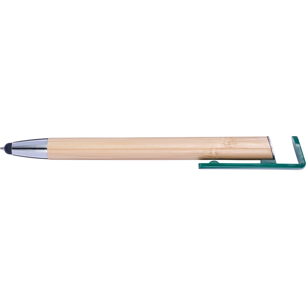 Długopis, touch pen, specjalny klip może służyć jako stojak na telefon, bambusowy trzon, kolorowe plastikowe elementy korpusu