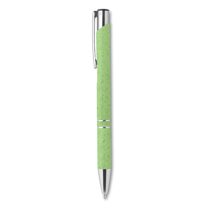 Długopis z przyciskiem 50% słomy pszennej 50% materiału ABS ze srebnym wykończeniem.Niebieski atrament.