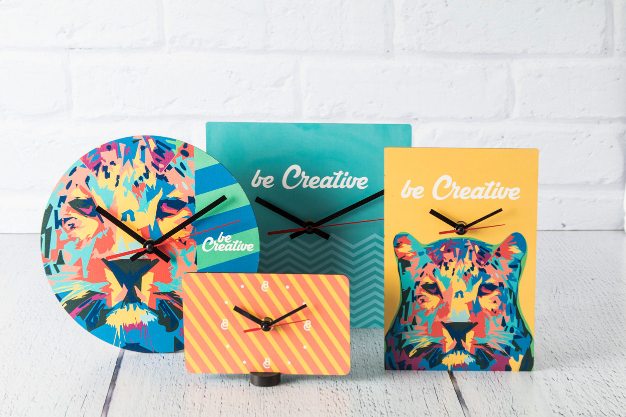 Personalizowany, wykonany z drewnianej płyty HDF, prostokątny zegar ścienny z grafiką. Produkt działa na 1 baterie AA, dostarczany bez baterii. Min. zam.: 50 szt.