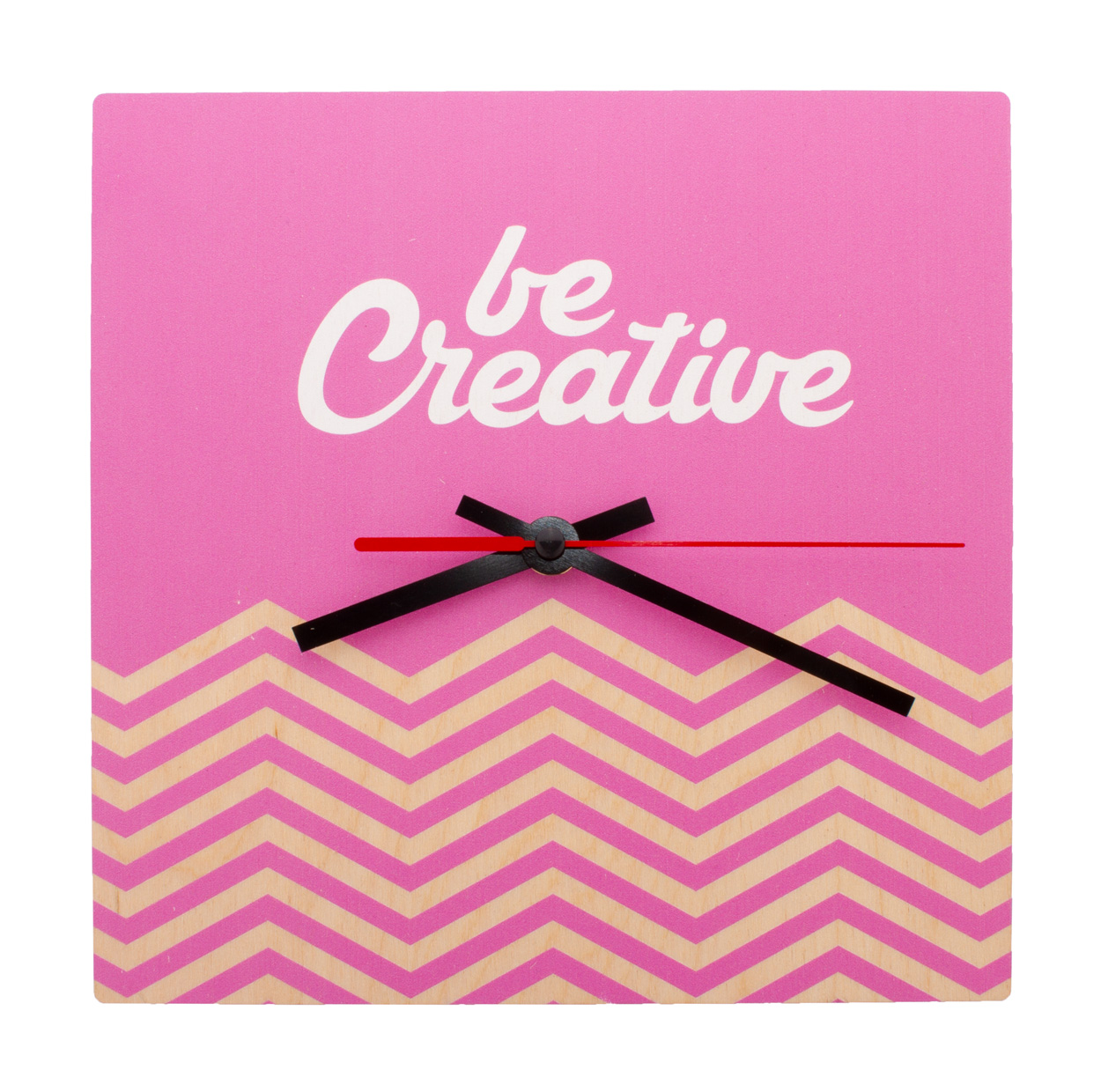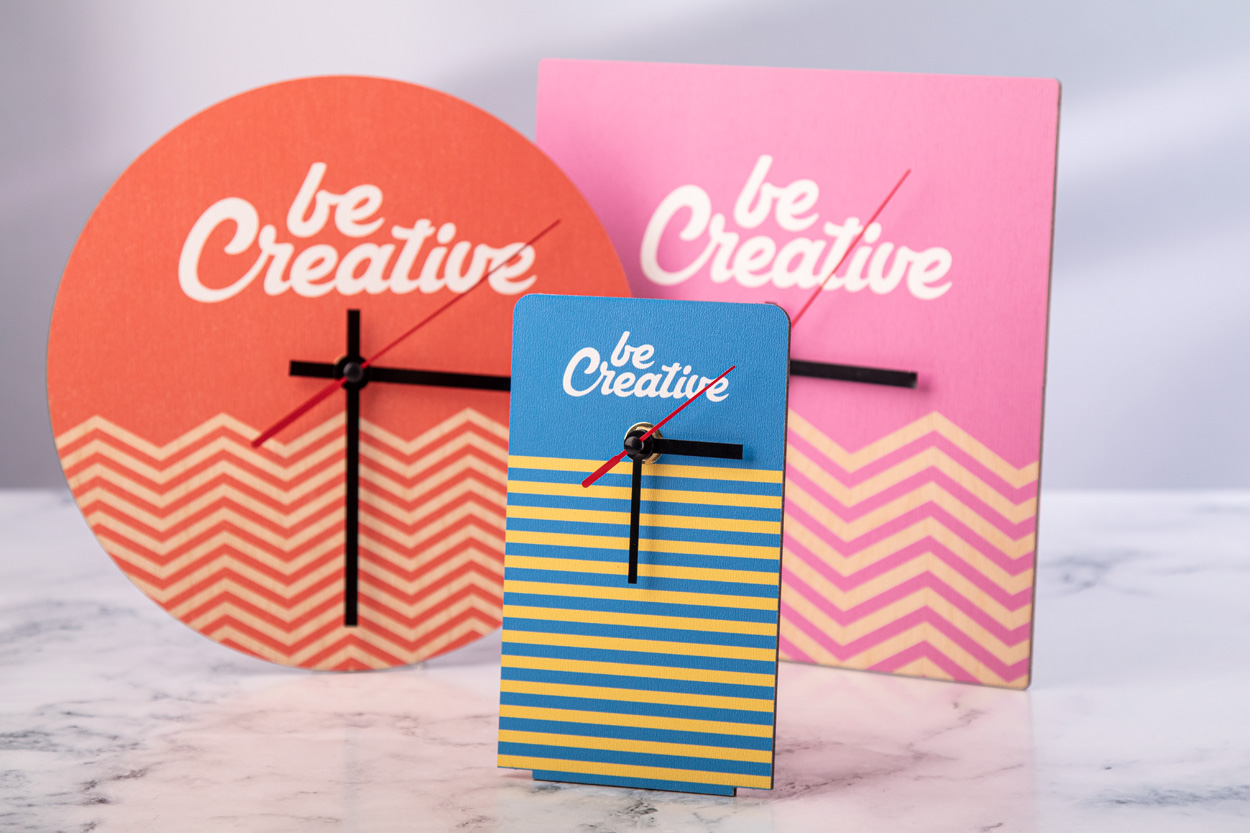 Wykonany na zamówienie, kwadratowy zegar ścienny ze sklejki brzozowej z personalizowaną grafiką. Działa z 1 baterią AA, bez baterii w zestawie. Min. ilość: 50 szt.
