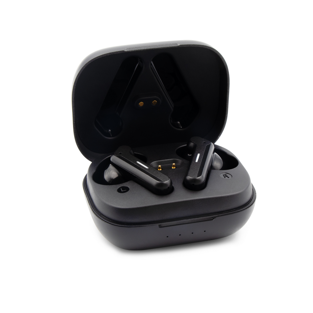 Słuchawki bezprzewodowe Exclusive Collection, BT 5.3, douszne, w etui ze stacją ładującą słuchawki 300 mAh, bateria słuchawek 2x 40 mAh, etui ładujące posiada 4 diody wskazujące poziom naładowania etui, grawer ukazuje podświetlaną powierzchnię, funkcja odbierania połączeń, czas pracy: ok. 7h (odtwarzanie muzyki), zasięg do 10 m, wejście USB-C, kabel USB-C do USB-C w komplecie, produkt wykonany z RABS