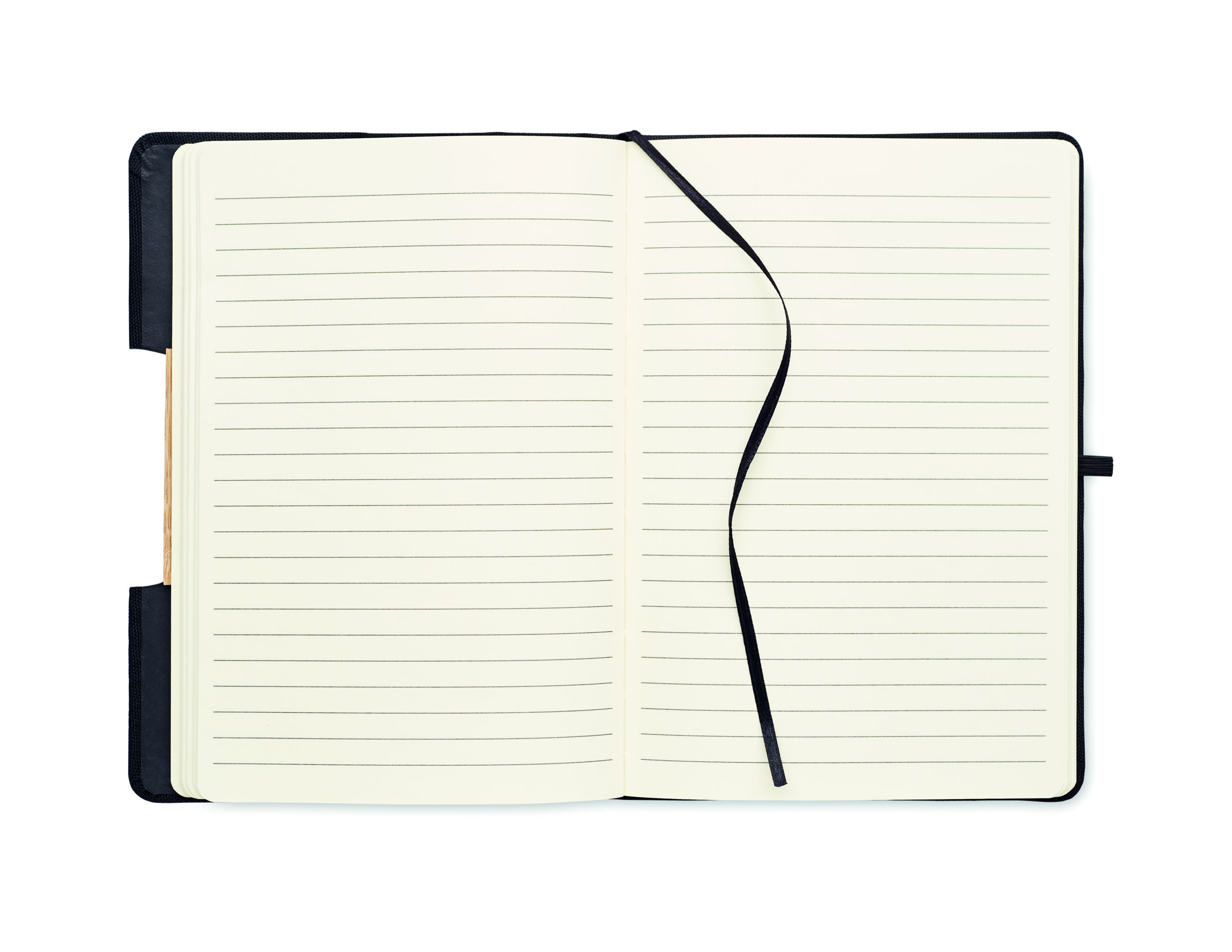 Notatnik A5 z twardą okładką 600D RPET z detalami z bambusa, z funkcją podstawki pod smartfon. 160 stron w linie (80 kartek). Papier ekologiczny o gramaturze 70 g/m². Dopasowany elastyczny pasek zamykający, tasiemka do oznaczania stron i uchwyt na długopis. Zabierz ten niezbędnik biurowy na następne spotkanie. Masz spotkanie on-line? Rozłóż uchwyt na telefon i umieść w nim swoje urządzenie, abyś nie musiał go trzymać. FSC®-certified | FSC MIX CREDIT, P7.1, FSC-C213206