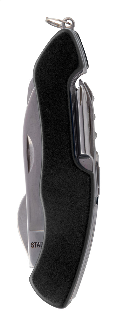 Scyzoryk ze stali nierdzewnej z 12 funkcjami i aluminiową rączką.