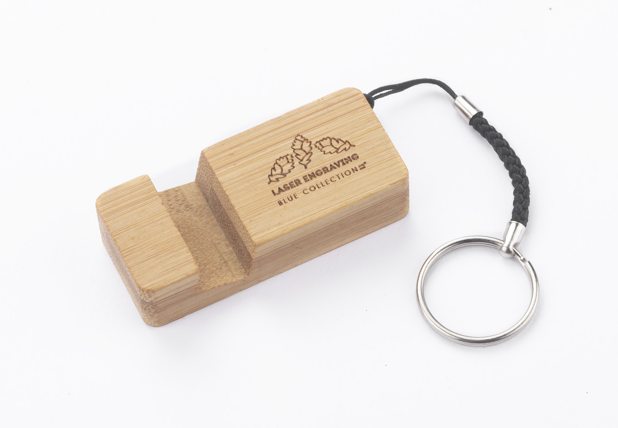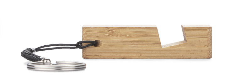 PENDE to praktyczny bambusowy brelok mogący służyć także jako stojak do telefonu.