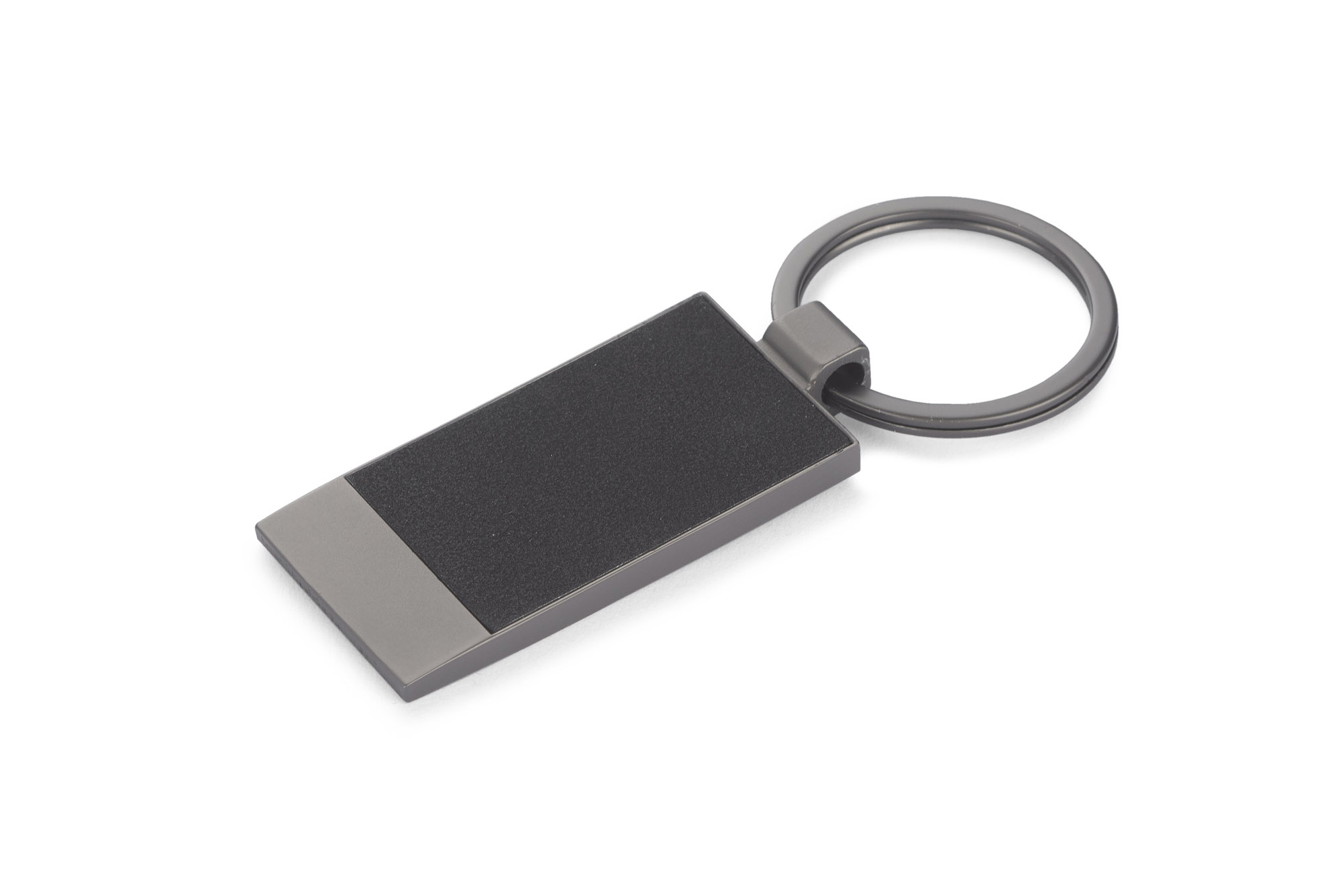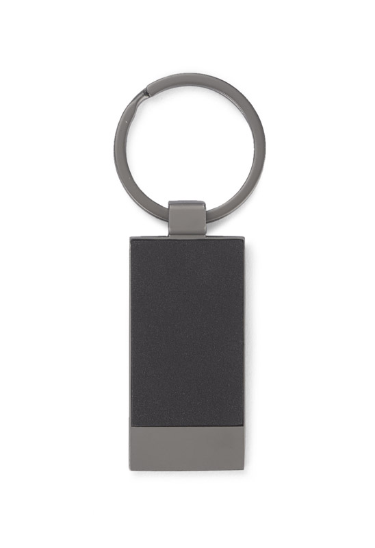 Metalowy brelok do kluczy z przyjemnym w dotyku materiałem. Pakowany w kartonik.