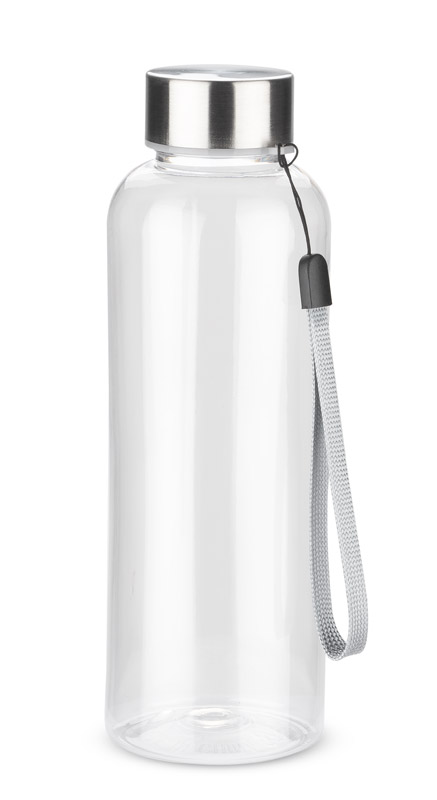Butelka REDUCE o pojemności 500 ml została wykonana z tworzywa rPET i wyposażona w klasyczną, gwintowaną nakrętkę ze stali nierdzewnej. Praktyczny uchwyt ze sznurkiem ułatwia przenoszenie, a kompaktowa forma sprawia, że butelka sprawdza się zarówno w biurze, jak i w podróży. Całość zapakowana jest w biodegradowalny woreczek, co podkreśla świadome podejście do opakowań.
