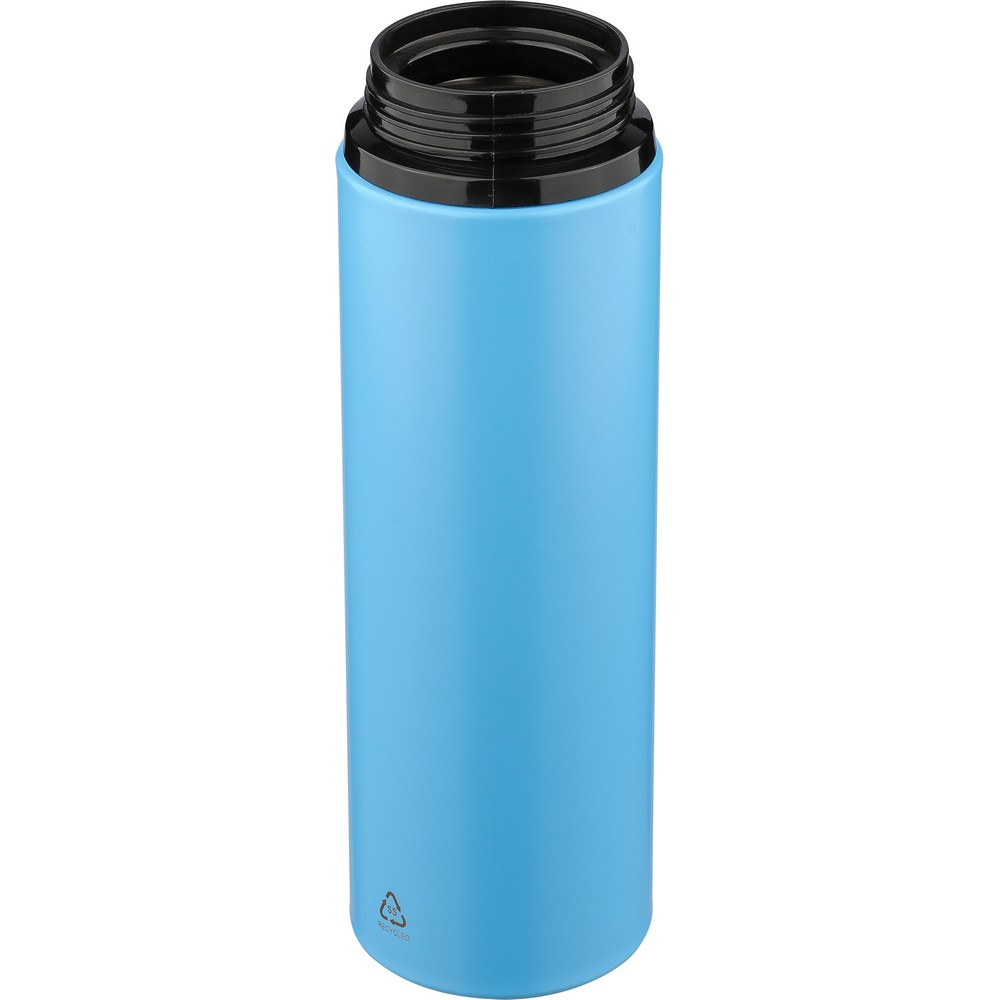 Butelka sportowa 500 ml, z uchwytem ułatwiającym przenoszenie, pojedyncza ścianka, składany ustnik ze słomką, ikona recyklingu na produkcie, zapakowana pojedynczo w brązowe kartonowe pudełko, produkt wykonany ze stali nierdzewnej 304 z recyklingu