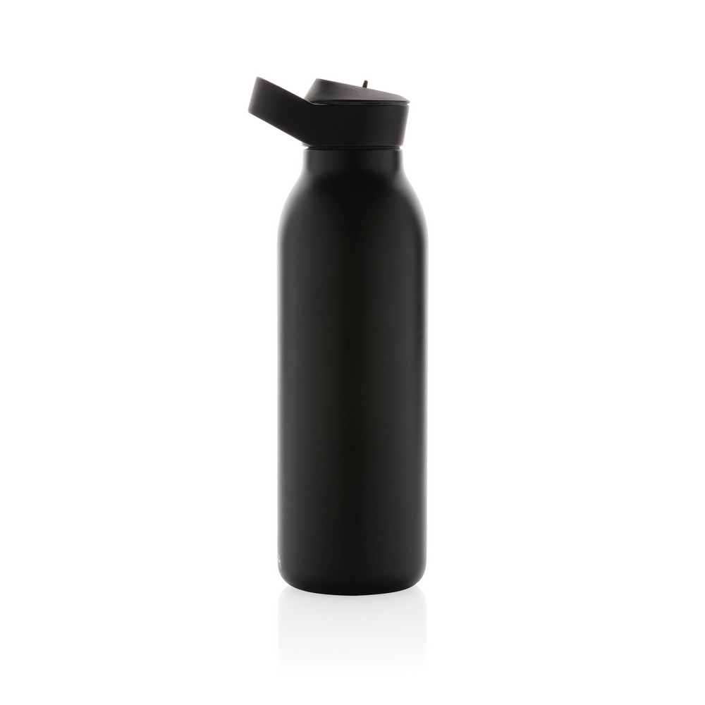 Butelka termiczna 500 ml, wykonana ze stali nierdzewnej pochodzącej z recyklingu, całkowita zawartość materiałów z recyklingu obliczona na podstawie wagi całkowitej przedmiotu: 96%, podwójne ścianki z próżnią pomiędzy, utrzymuje temperaturę napojów zimnych do 20 godzin, pasuje do większości uchwytów samochodowych, w pudełku z papieru kraftowego z certyfikatem FSC®, pudełko można wykorzystać jako stojak na telefon lub doniczkę, w pudełku z papieru kraftowego z certyfikatem FSC®, ślad węglowy produktu: 1,48 kg CO2