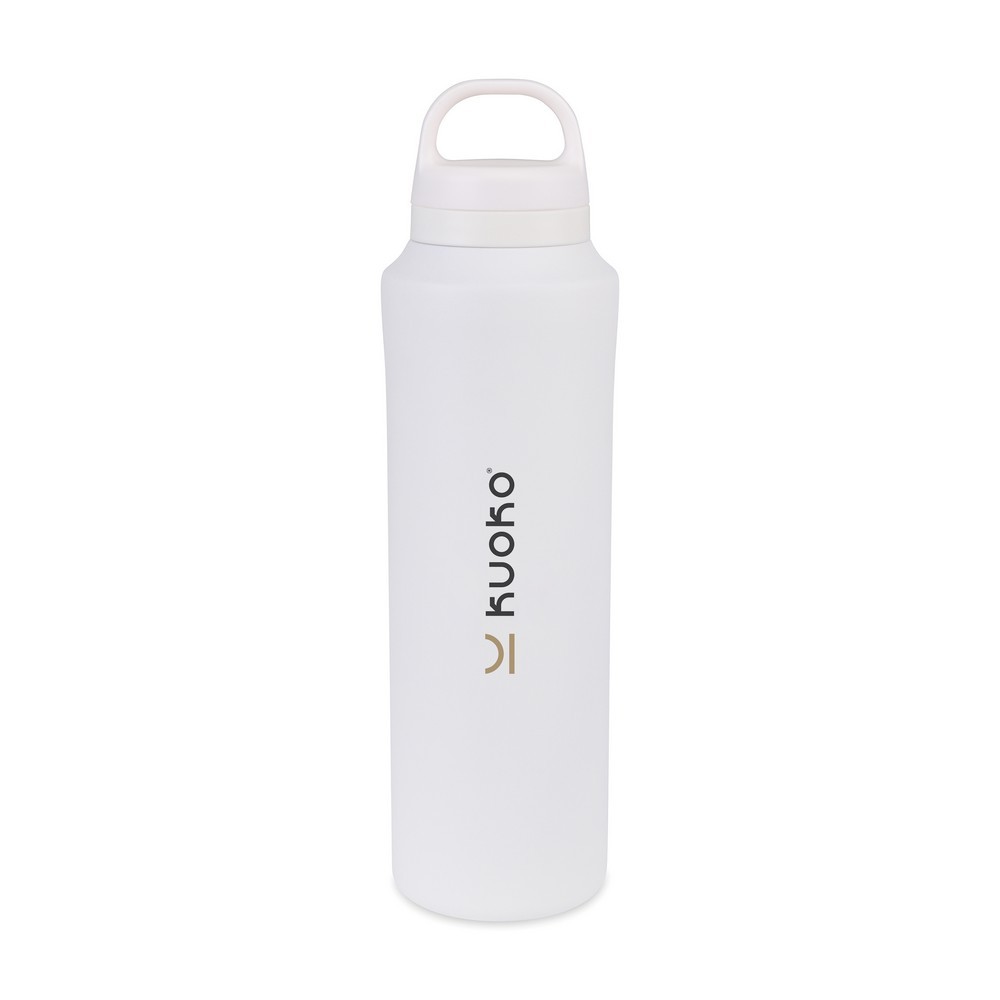 Butelka termiczna 740 ml, posiada podwójne ścianki ze stali nierdzewnej z próżnią między ściankami, co spowalnia oddawanie temperatury na zewnątrz, zachowując funkcje termosu, wykonana z materiałów z recyklingu