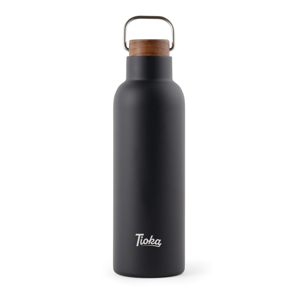 Butelka termiczna 800 ml, podwójne ścianki ze stali nierdzewnej z próżnią pomiędzy, wykonana ze stali nierdzewnej z recyklingu z certyfikatem RCS, drewniane wieczko z uchwytem, całkowita zawartość materiałów z recyklingu obliczona na podstawie wagi całkowitej przedmiotu: 79%, wyłącznie mycie ręczne, w pudełku z papieru kraftowego z certyfikatem FSC®