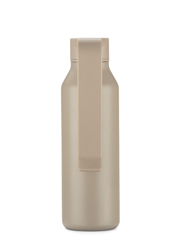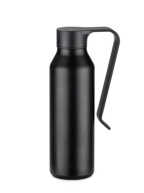 Butelka termiczna TIMI łączy nowoczesną formę z praktycznymi rozwiązaniami. Wykonana ze stali nierdzewnej, utrzymuje temperaturę napojów do 2 godzin i nadaje się zarówno do napojów zimnych, jak i ciepłych. Przy bardzo gorących lub wrzących napojach niektóre elementy mogą się nagrzewać, co stwarza ryzyko poparzenia — zaleca się więc ostrożność podczas użytkowania. Charakterystyczny, geometryczny uchwyt nie tylko ułatwia przenoszenie, ale także pełni funkcję stojaka na telefon lub haczyka do zawieszenia, np. na krześle czy kierownicy. Klasyczna, gwintowana zakrętka zapewnia wygodne otwieranie i szczelne zamknięcie. Prosty kształt i matowe wykończenie nadają jej minimalistyczny wygląd. To idealny wybór dla osób ceniących funkcjonalny design i możliwość personalizacji poprzez znakowanie.