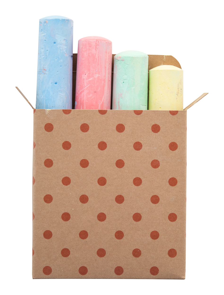 Zestaw 4 kolorowych kred w pudełku z papieru kraft z nadrukiem w full kolorze. Cena obejmuje druk cyfrowy. Min. ilość: 100 szt.