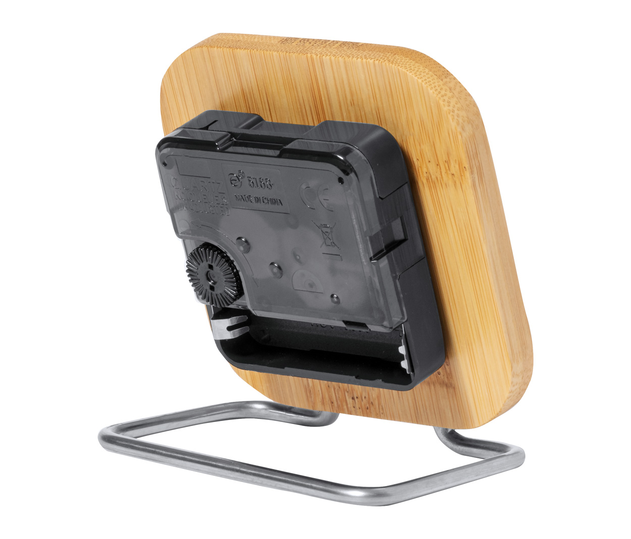 Zegar biurkowy z bambusa i stali nierdzewnej. Działa z 1 baterią AA, bez baterii.