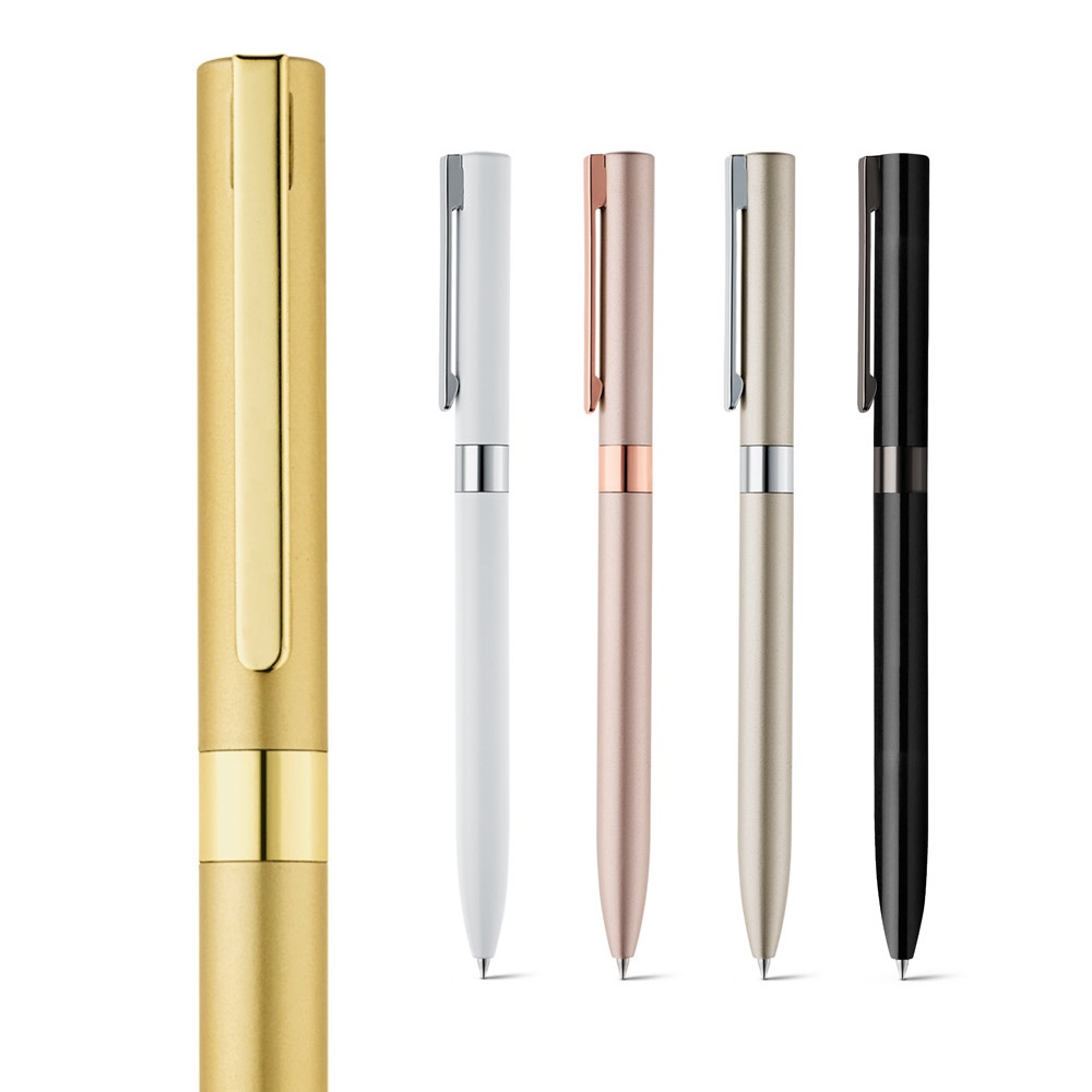 Aluminiowy pochodzącego z recyklingu (100% rAL) długopis z mechanizmem obrotowym i klipsem. Dostępny w stylowych kolorach. Czarny tusz