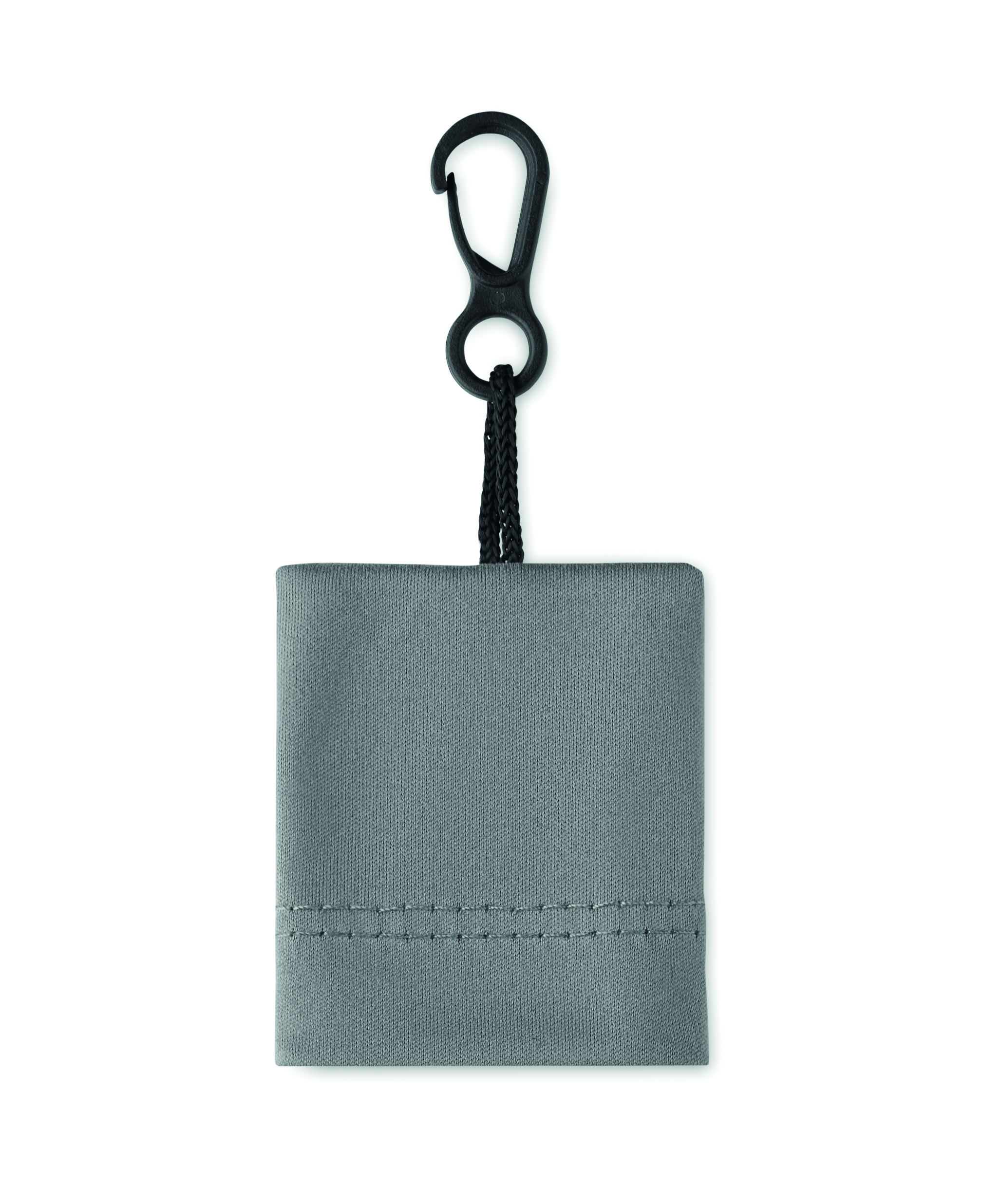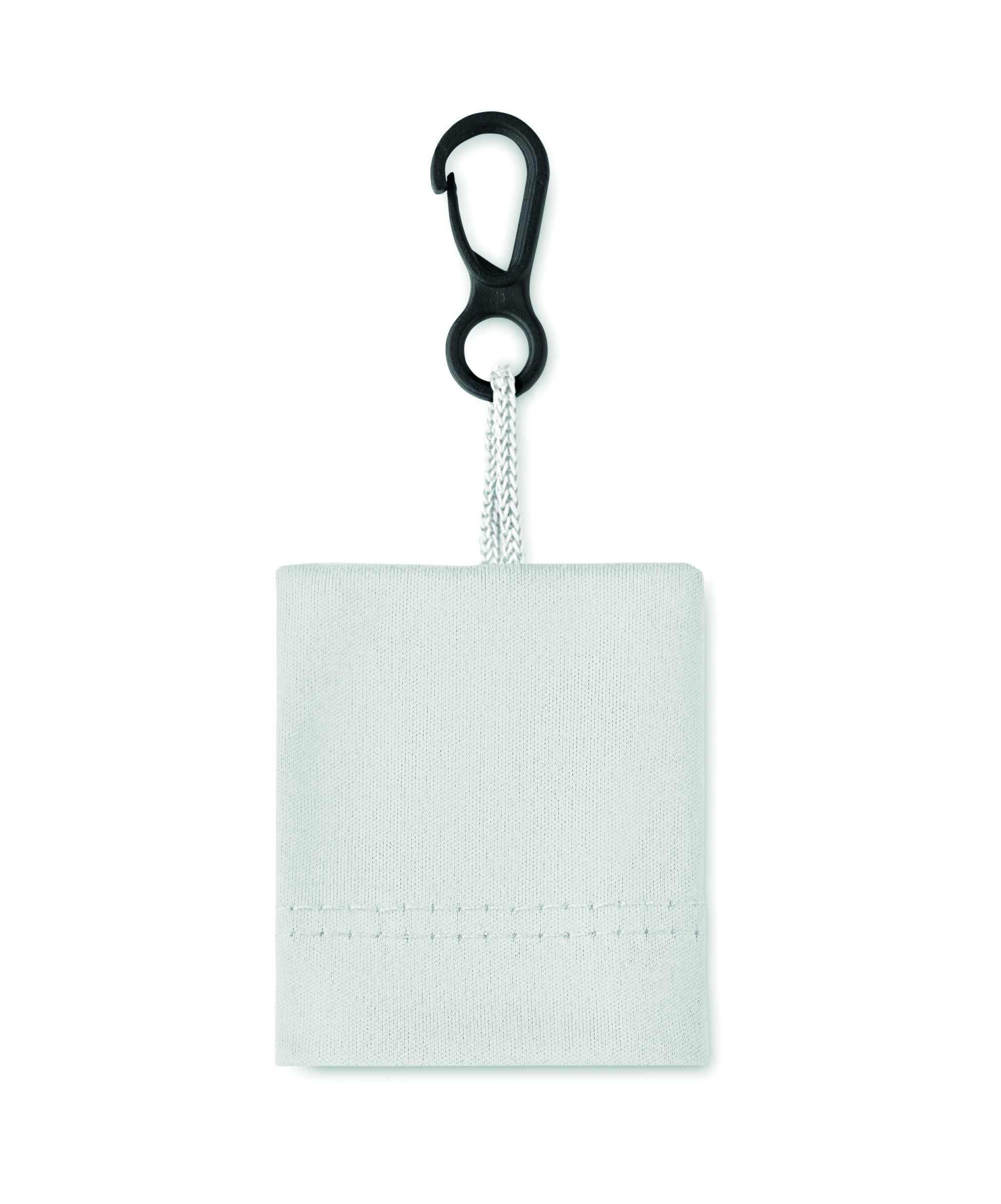 Ściereczka czyszcząca RPET z materiałowym woreczkiem z plastikowym haczykiem do zawieszania PP.