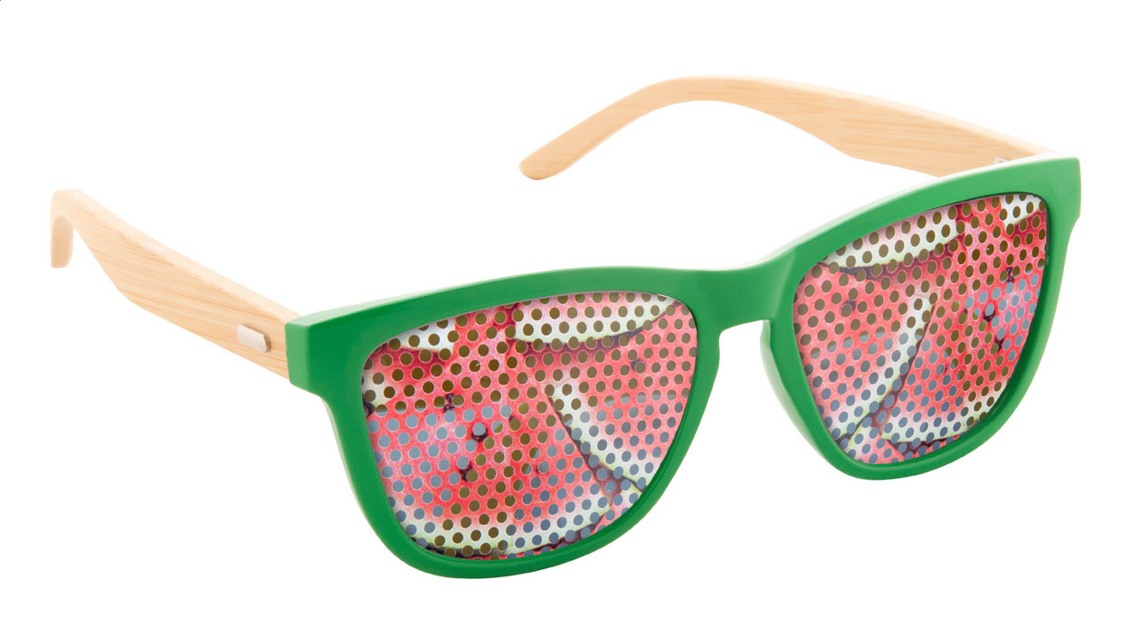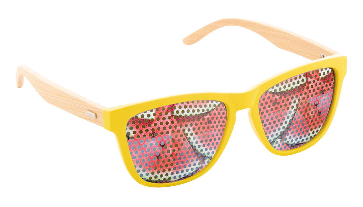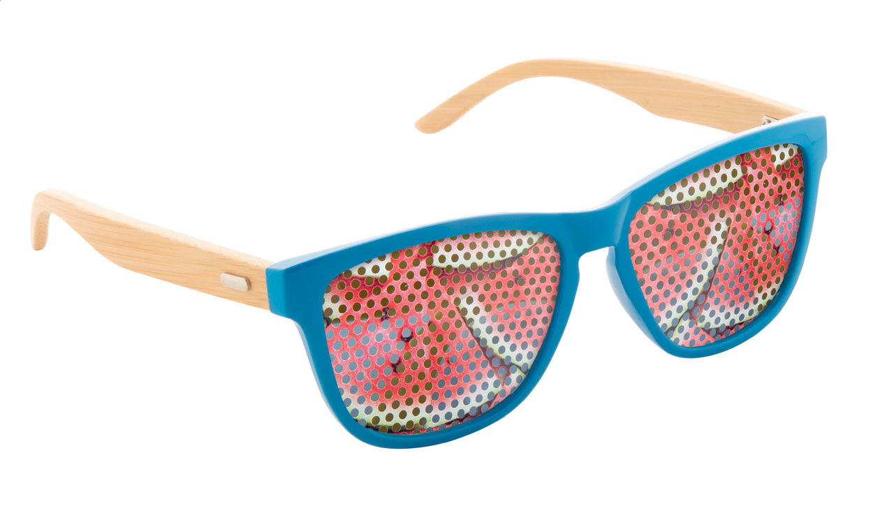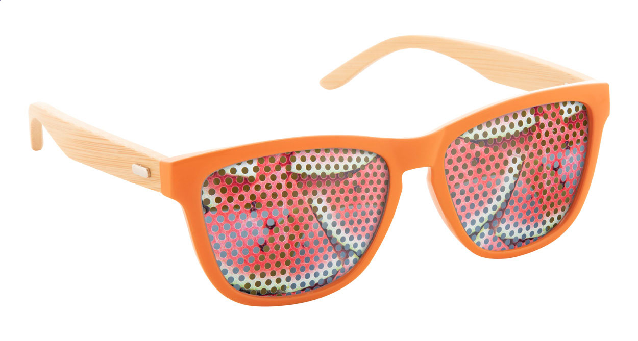 Kolorowe okulary przeciwsłoneczne z bambusowymi zausznikami. Z ochroną UV 400.