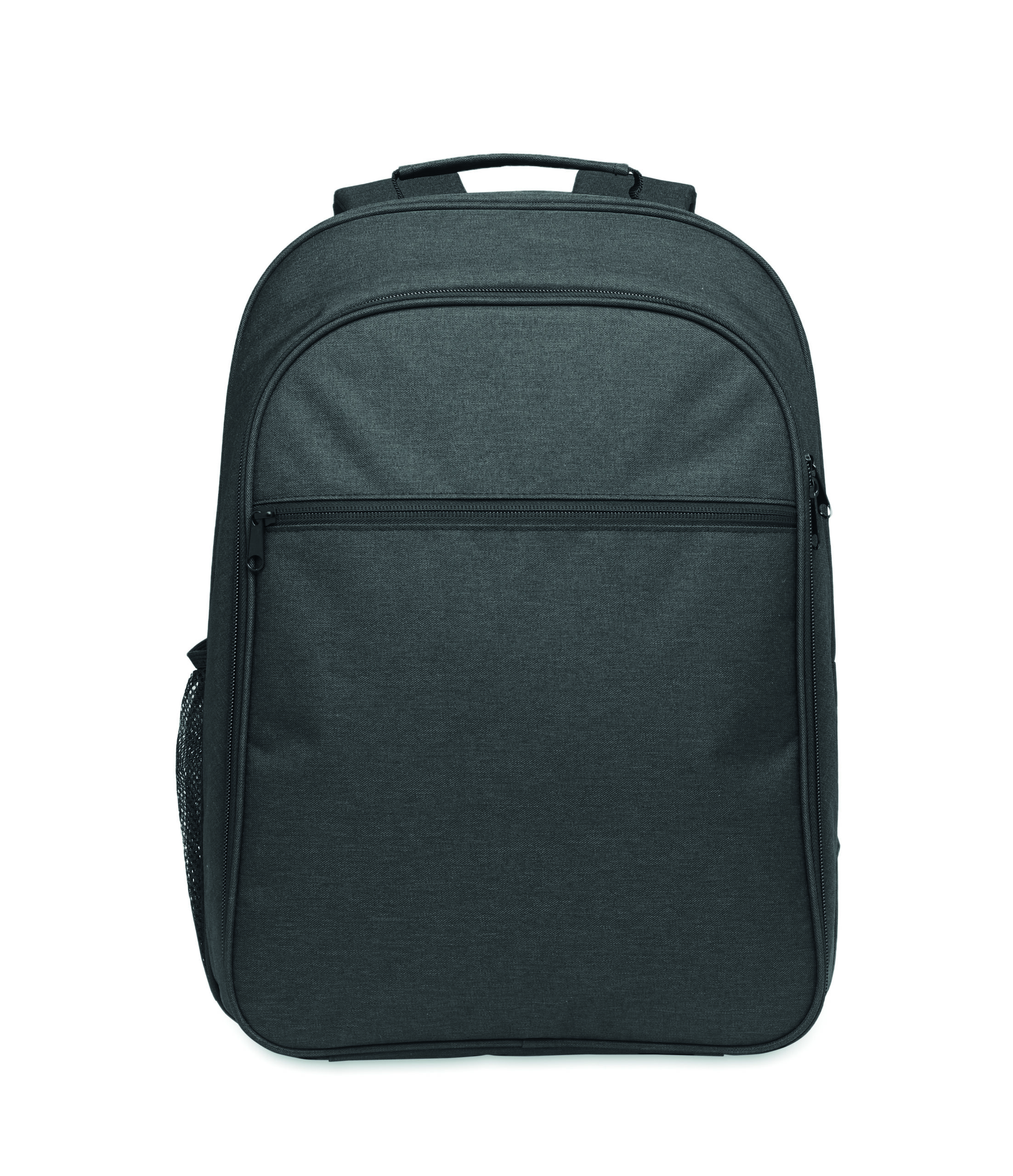Plecak chłodzący 300D RPET z przegrodą na laptopa 15 cali. Przednia kieszeń na suwak i jedna boczna przegroda z siatki.
