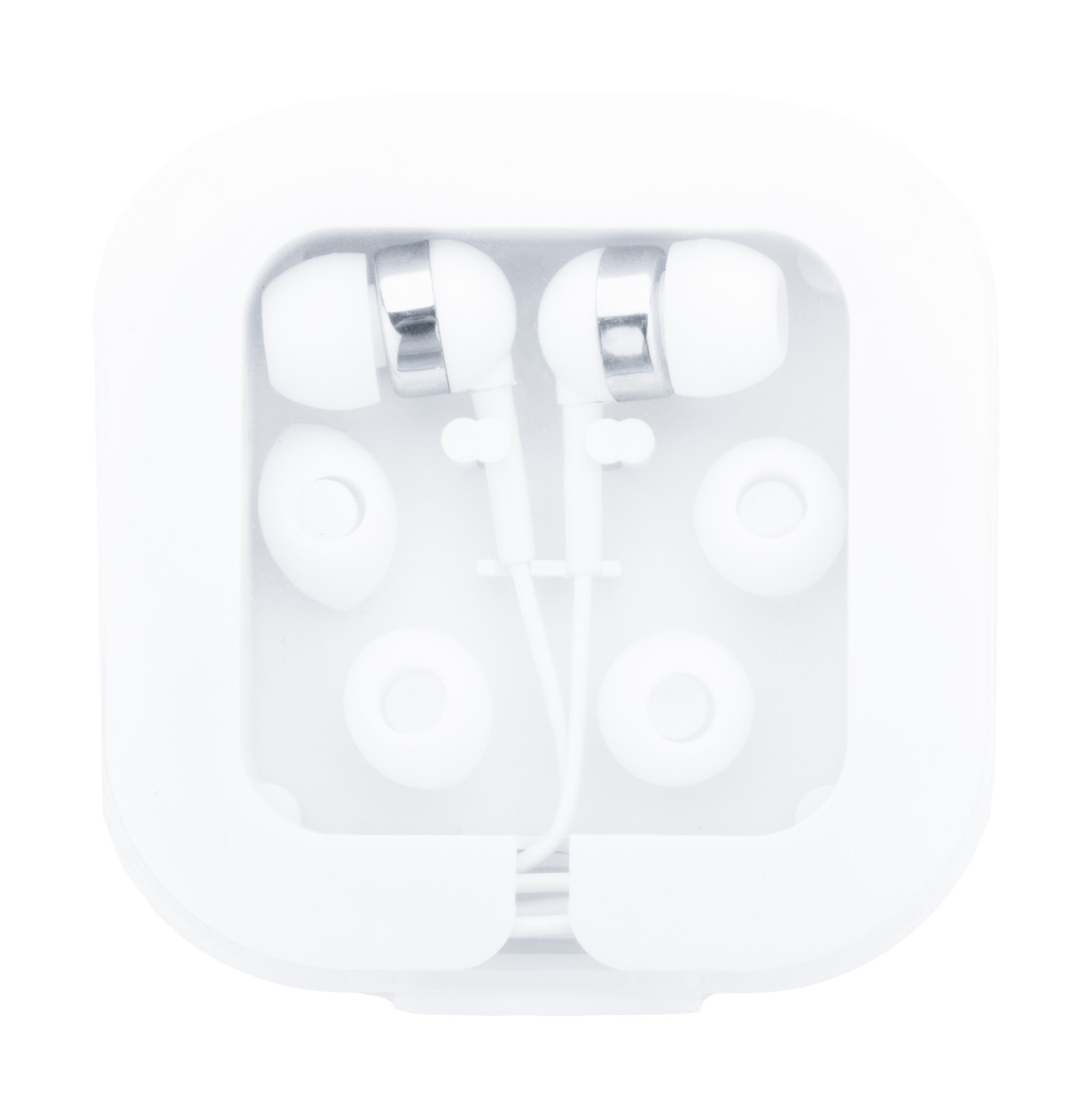 Słuchawki douszne z cyfrowym złączem USB-C i 3 parami wkładek dousznych, w plastikowym etui z funkcją uchwytu na telefon.