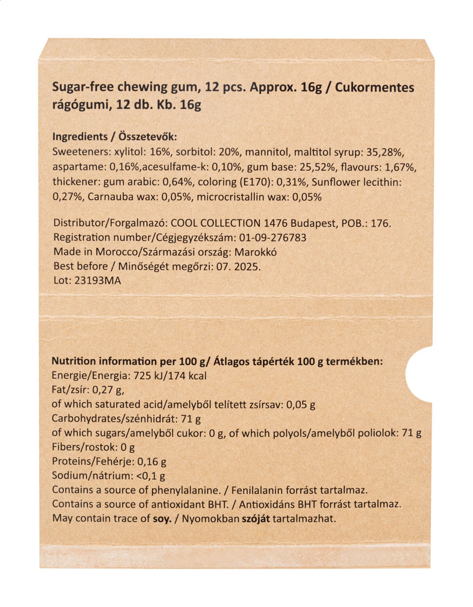 Guma do żucia w spersonalizowanej kopercie z papieru typu kraft.
