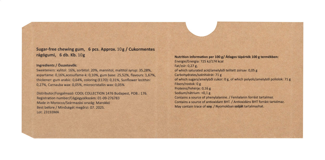 Guma do żucia w spersonalizowanej kopercie z papieru typu kraft.