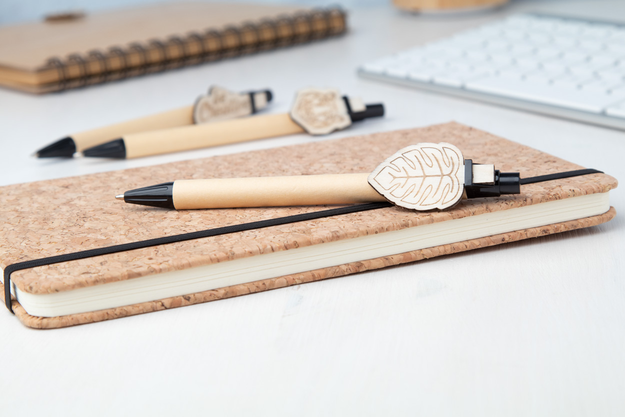 Długopis z papieru z recyklingu z indywidulanym klipem ze sklejki i niebieskim wkładem. Klip jest wykonany w niestandardowym kształcie – maksymalny rozmiar: 25×35 mm. Cena obejmuje grawerowanie logo na klipie. Min. ilość: 100 szt.