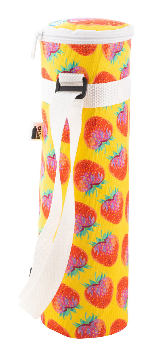 Wykonana na zamówienie, zapinana na zamek torba chłodząca na butelkę z poliestru 600D RPET z aluminiową wyściółką i regulowanym paskiem na ramię. Idealna na jedną butelkę 1,5 l. Z nadrukowaną grafiką sublimacyjną na całej powierzchni i charakterystyczną metką RPET. Min. ilość: 50 szt.