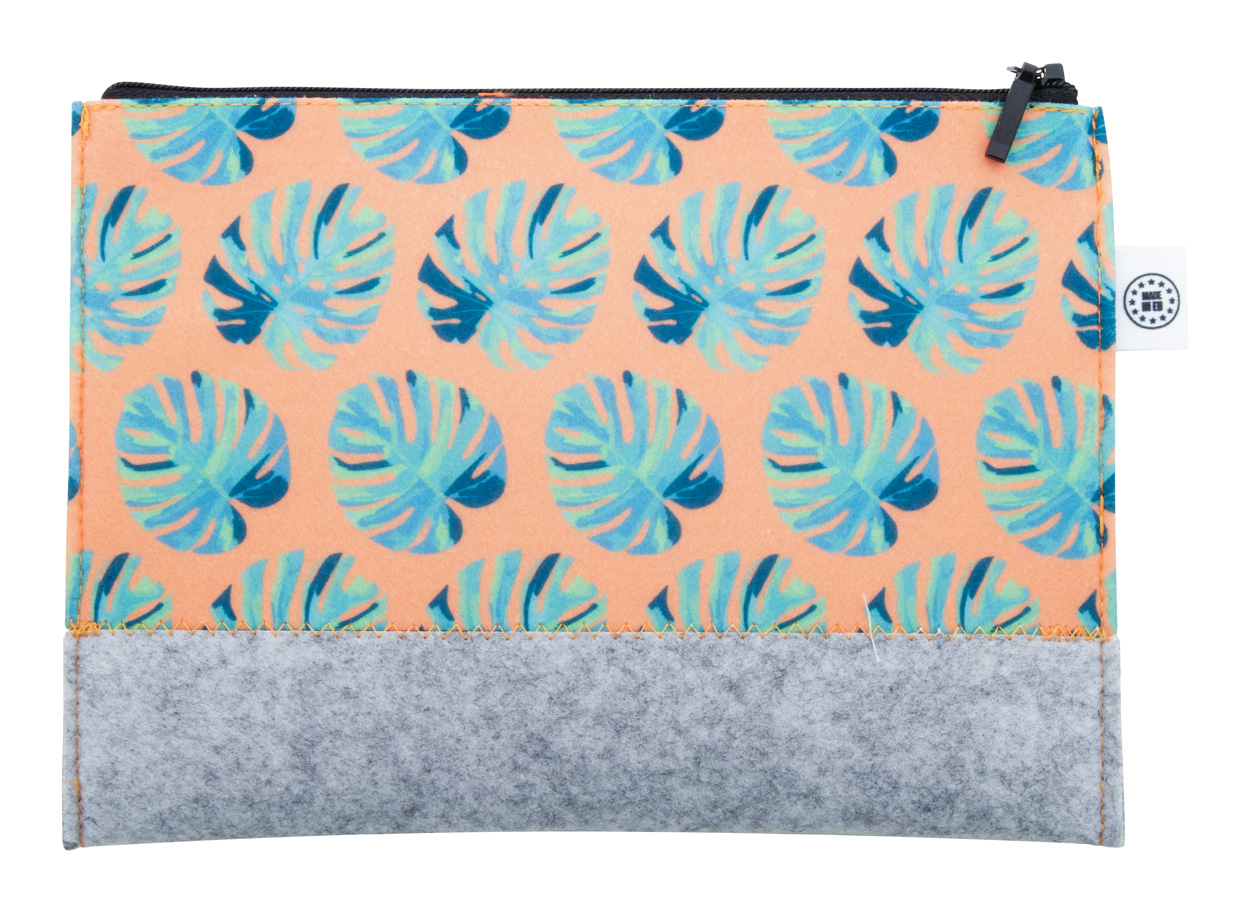 Personalizowana kosmetyczka zapinana na zamek z filcu RPET z nadrukowaną na całej powierzchni grafiką sublimacyjną. Z charakterystyczną metką RPET. Min. Ilość: 50 szt.