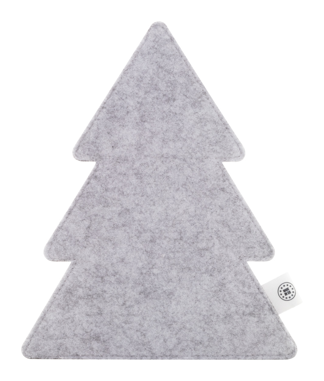 Personalizowany, filcowy uchwyt na sztućce RPET w kształcie choinki, z full kolorowym nadrukiem z przodu i charakterystyczną metką RPET. Cena obejmuje nadruk sublimacyjny. Min. ilość: 50 szt.