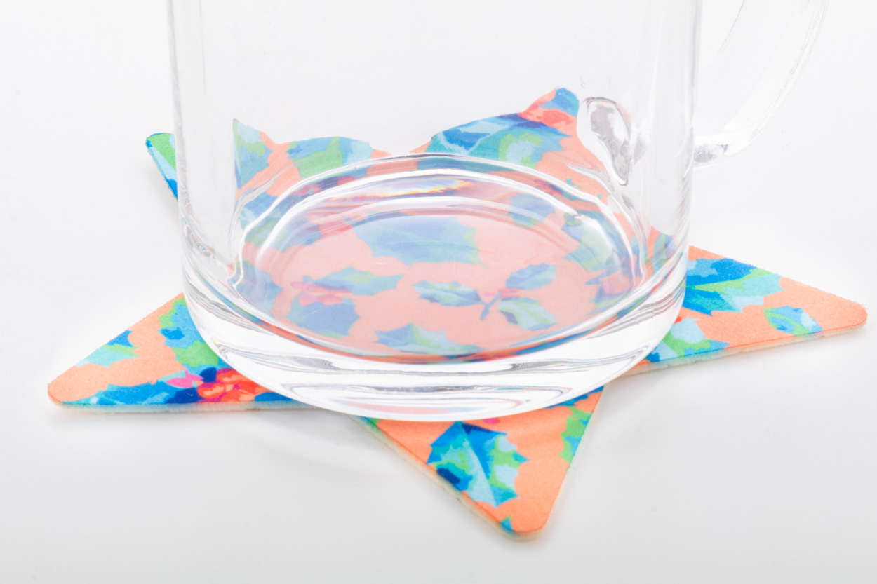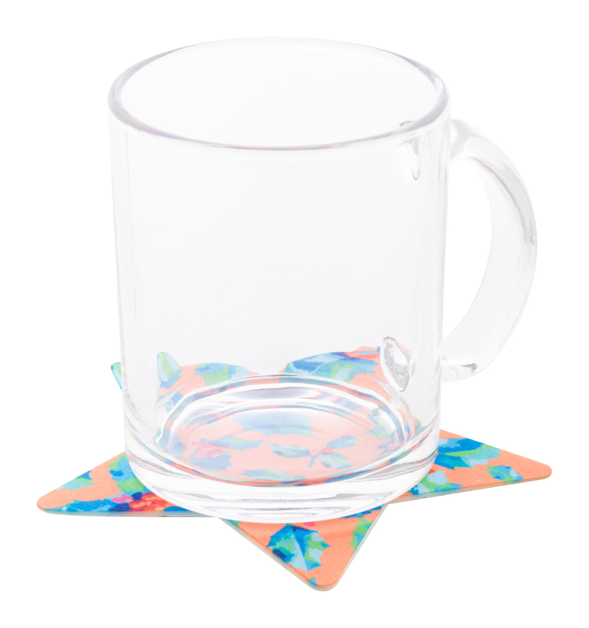 Personalizowana, świąteczna podkładka RPET w kształcie gwiazdy z grafiką po jednej stronie. Cena obejmuje nadruk sublimacyjny. Min. ilosć: 100 szt.