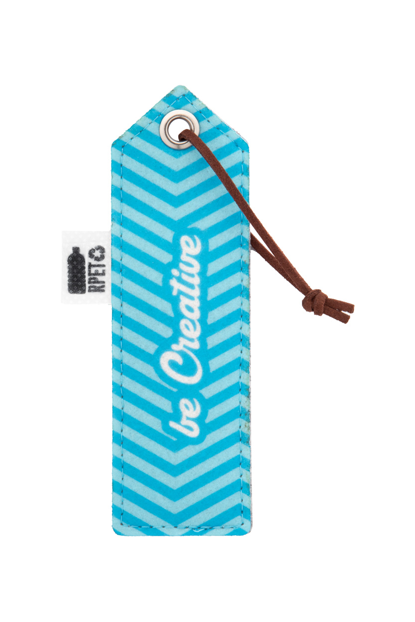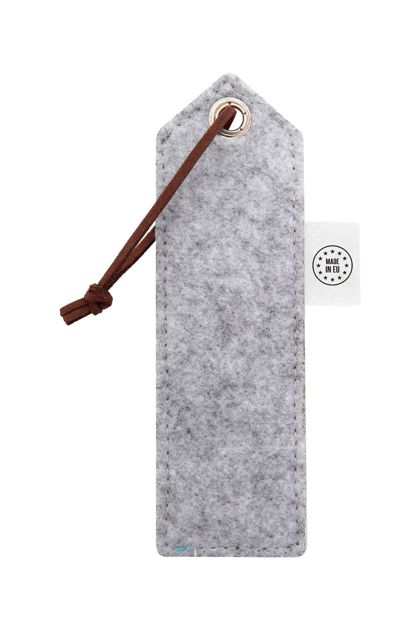 Personalizowana, filcowa zakładka do książki RPET z full kolorowym nadrukiem z przodu i sznurkiem ze skóry PU. Z charakterystyczną metką RPET. Cena zawiera nadruk sublimacyjny. Min.ilość: 100 szt.