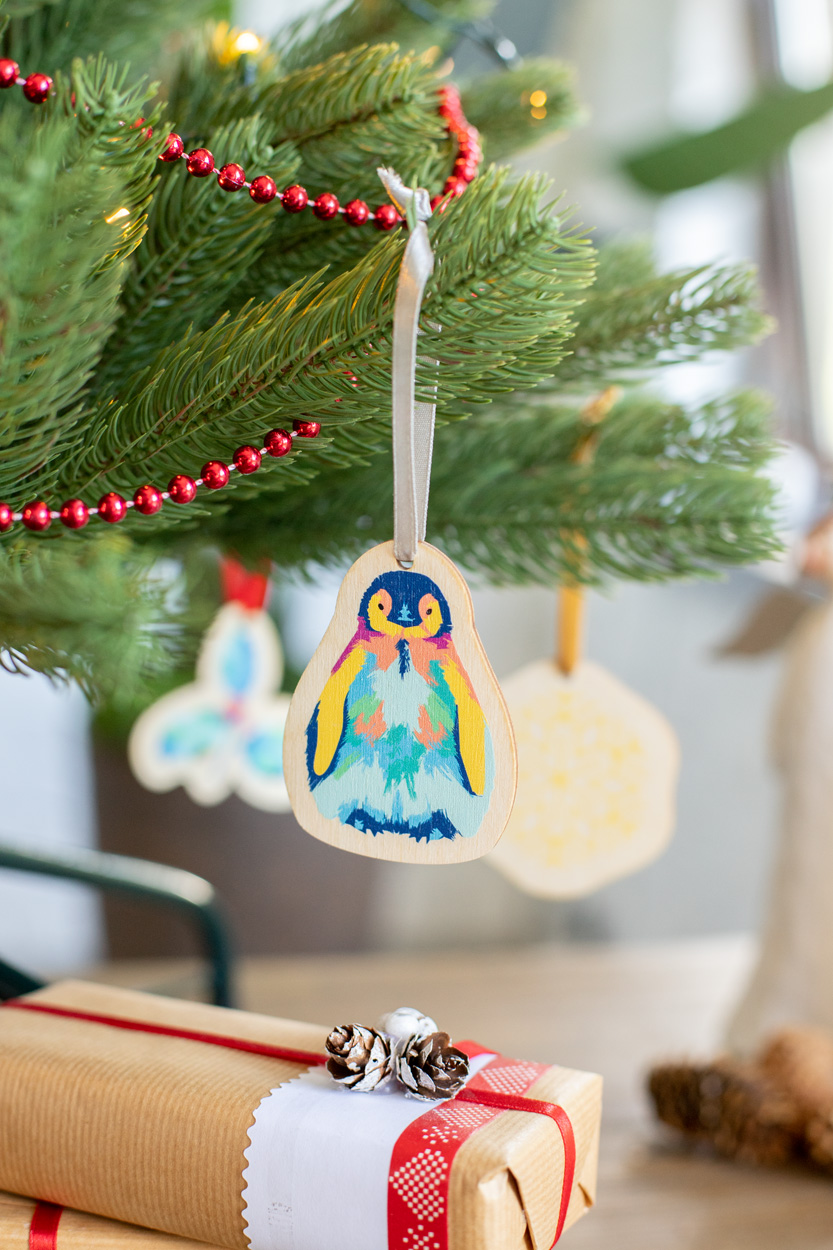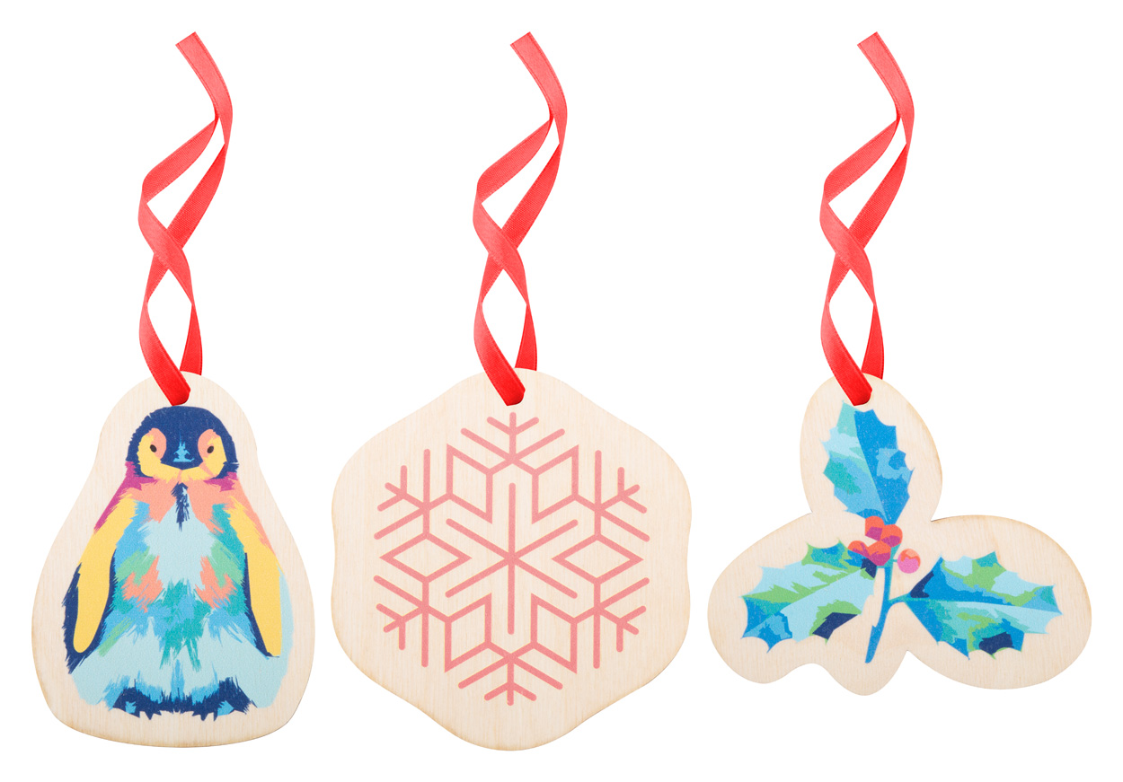 Personalizowana ozdoba choinkowa ze sklejki brzozowej, o indywidualnym kształcie z full kolorową grafiką. Maksymalny rozmiar: 80×80 mm. Cena obejmuje jednostronny nadruk UV LED. Dostarczana z odpiętą tasiemką. Min. ilość: 100 szt.