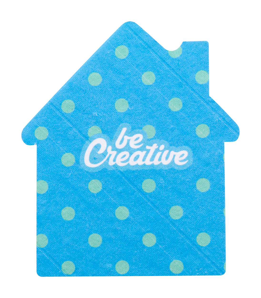 Wykonany na zamówienie, notatnik z papieru nasiennego w kształcie domku. Zawiera 50 arkuszy samoprzylepnych karteczek z papieru pochodzącego z recyklingu. Cena obejmuje okładkę zewnętrzną z nadrukiem w full kolorze. Min. ilość: 100 szt. Z różnymi nasionami dzikich kwiatów.