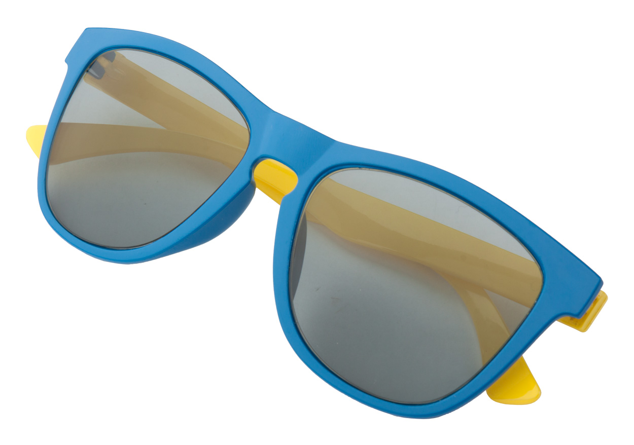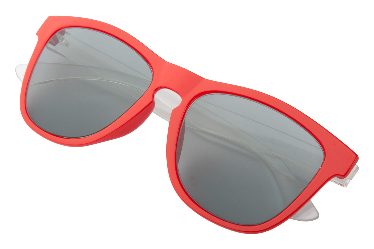 Personalizowane, plastikowye okulary z filtrem UV 400. Produkt składany z wybranym kolorystycznie oprawek i zaucszników. Min.ilość: 50 szt.