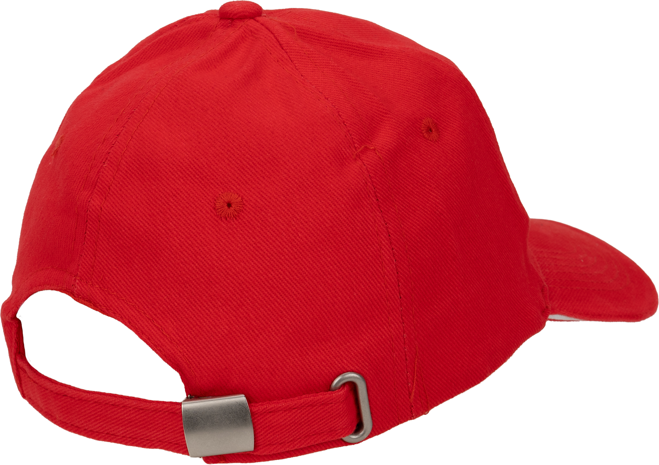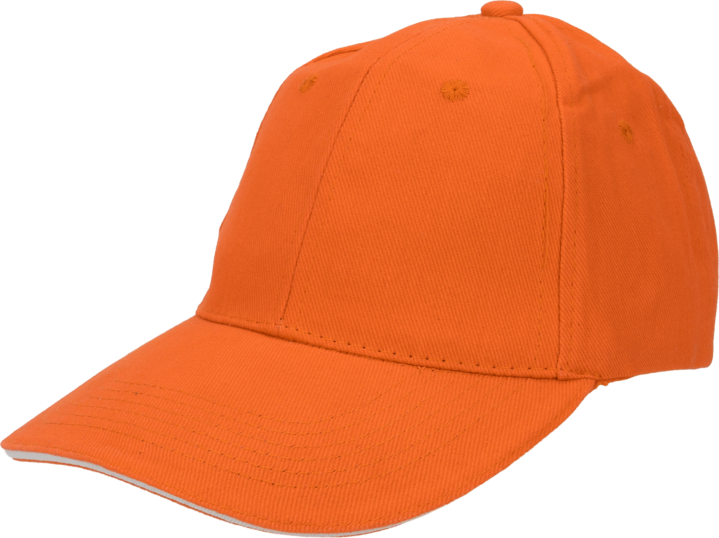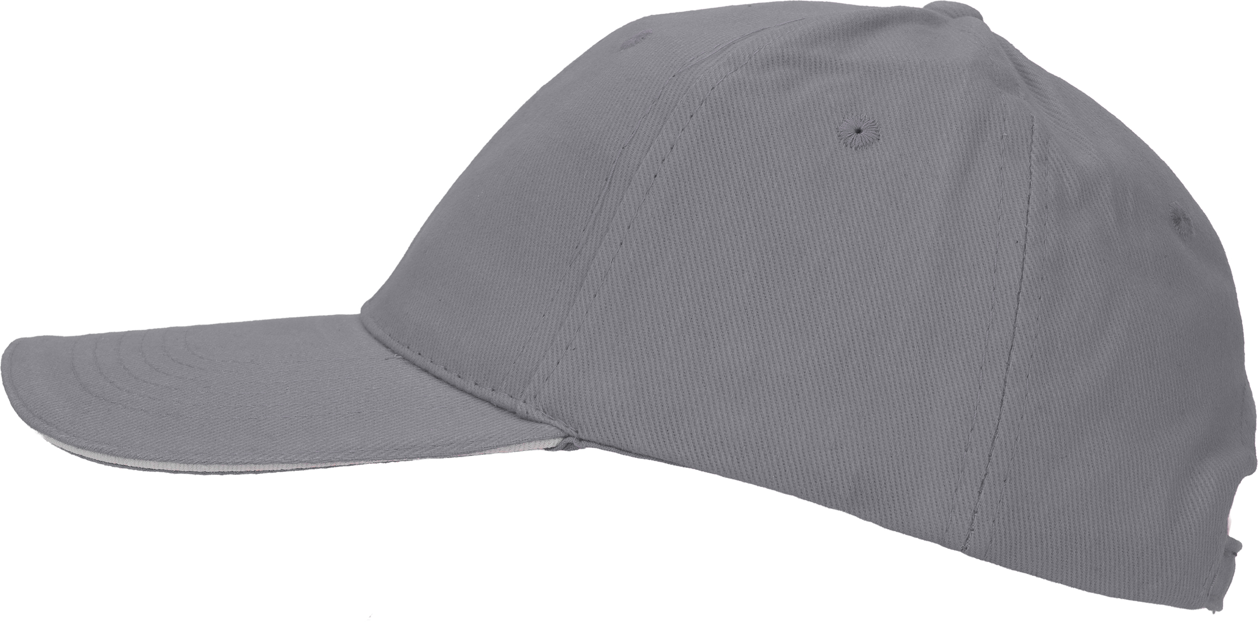 Bawełniana, 6-panelowa czapka z daszkiem typu Sandwich, wykonana z bawełny czesanej wolnej od AZO (gramatura 260 g/m²), regulowana za pomocą metalowego zapięcia.
