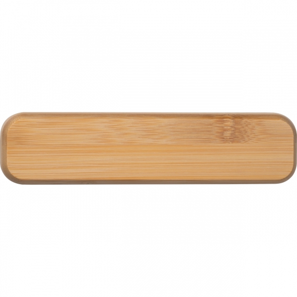 Przekręcany długopis bambusowy, z niebieskim wkładem. Pakowany w dopasowane, bambusowe etui.