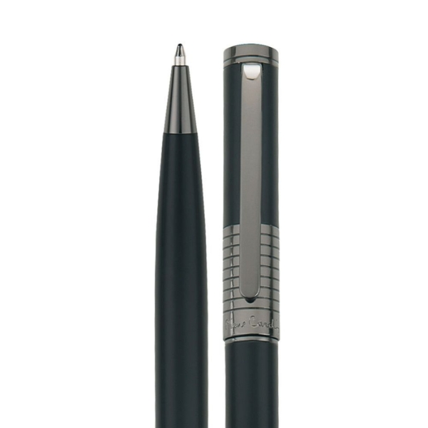 Elegancki długopis metalowy z gładkim korpusem oraz ciemnymi detalami. Wyposażony w wysokiej jakości niebieski wkład z końcówką 1 mm. W zestawie z wkładem zapasowym piszącym na czarno. Zapakowany w eleganckie pudełko prezentowe z certyfikatem autentyczności Pierre Cardin.