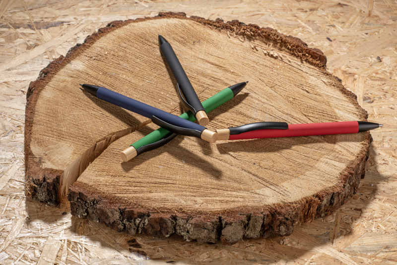 Długopis PIK to elegancki i funkcjonalny przyrząd piśmienniczy. Wykonany z metalu, oferuje solidność i trwałość, a gumowana powierzchnia „soft touch” zapewnia komfort i przyjemność podczas pisania. Wyposażony w klips umożliwiający przypięcie długopisu do kieszeni lub notesu. Dodatkowo, górna część długopisu wyposażona jest w bambusowy przycisk, co dodaje naturalnego i stylowego akcentu. Długopis PIK to idealne połączenie nowoczesnego designu z ekologicznym elementem, co sprawia, że jest doskonałym wyborem zarówno do codziennego użytku, jak i na prezent.