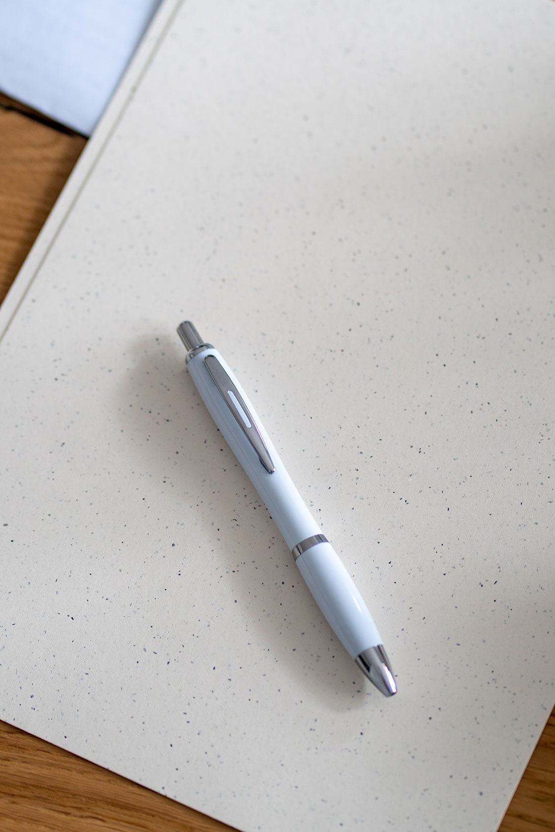 Klasyczny długopis plastikowy z metalowym klipsem i dużym, niebieskim wkładem.