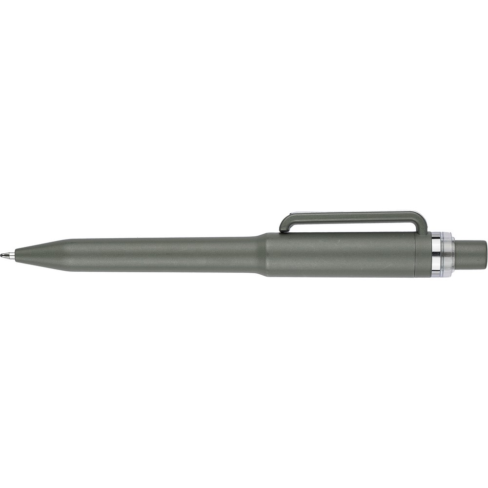 Długopis RABS, w kształcie kubka podróżnego, z metalicznym wykończeniem, wkład w niebieskim kolorze o długości pisania 800 metrów, mechanizm przyciskowy, ikona ABS z recyklingu, plastikowy przycisk, klips oraz chromowany plastikowy pierścień na górze