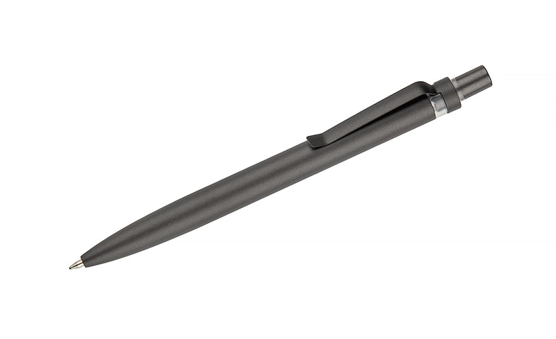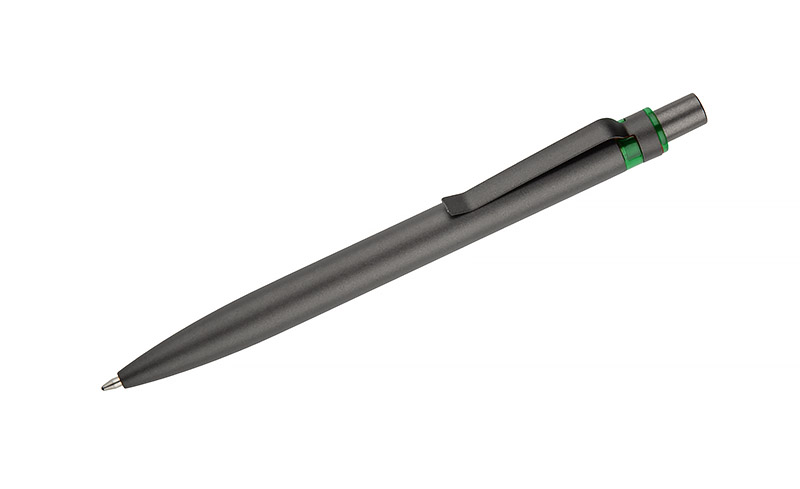 Długopis RAL wykonany jest z recyklingowanego aluminium w eleganckim, grafitowym kolorze z chromowanym wykończeniem. Aluminiowy klips zakończony kolorowym akcentem nadaje mu nowoczesny i rozpoznawalny wygląd. Mechanizm wysuwu jest automatyczny, co zapewnia wygodę i szybkie użycie w każdej sytuacji. Smukła forma oraz przyjemny w dotyku korpus gwarantują komfort pisania. Wkład typu G2 o grubości linii 1,0 mm zapewnia płynny i precyzyjny zapis. To praktyczny gadżet reklamowy, który świetnie sprawdzi się w biurze i podczas spotkań biznesowych.