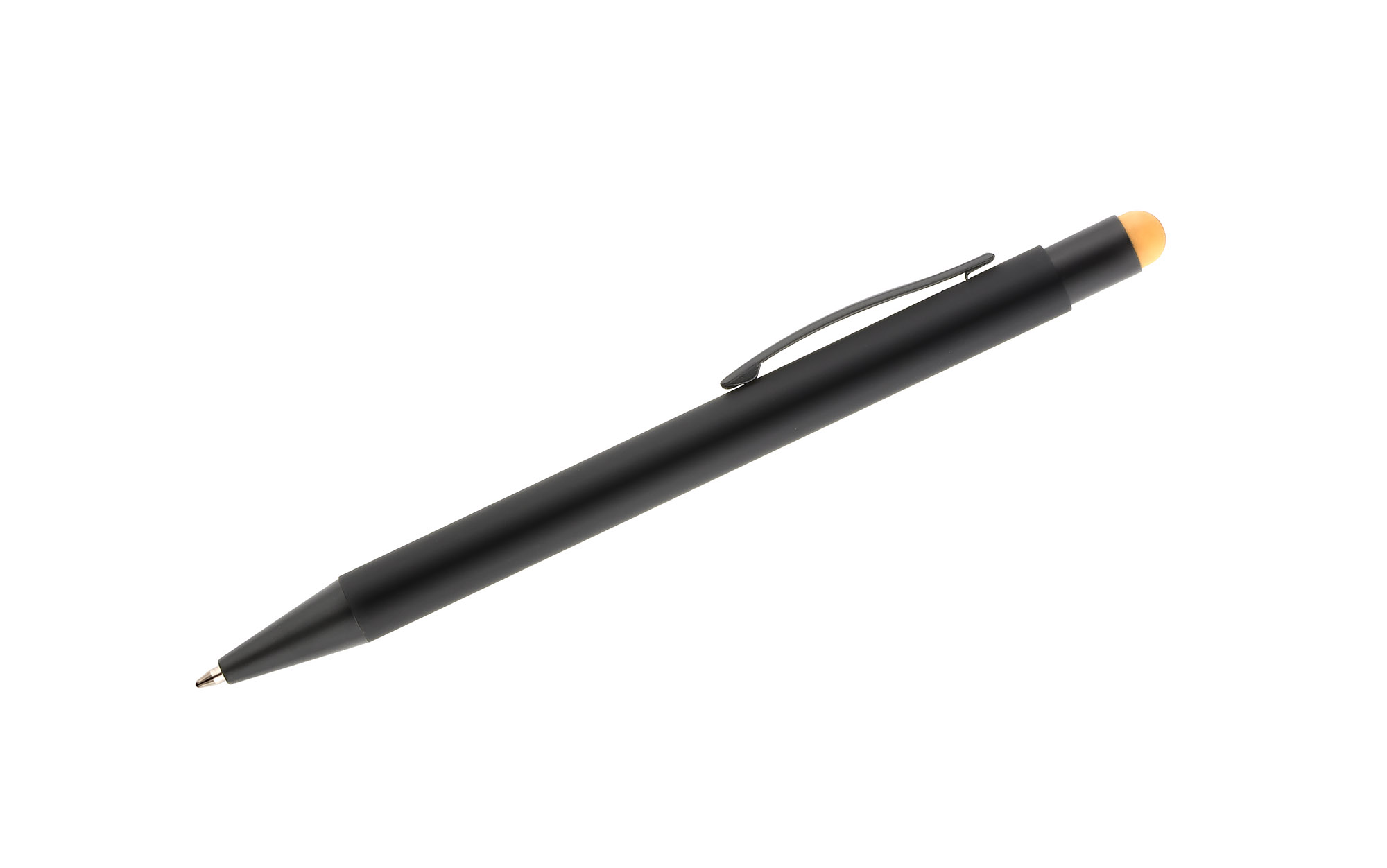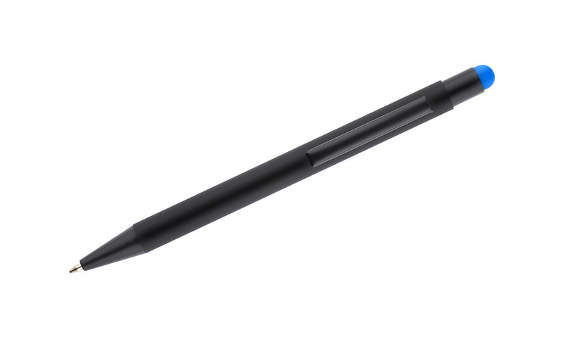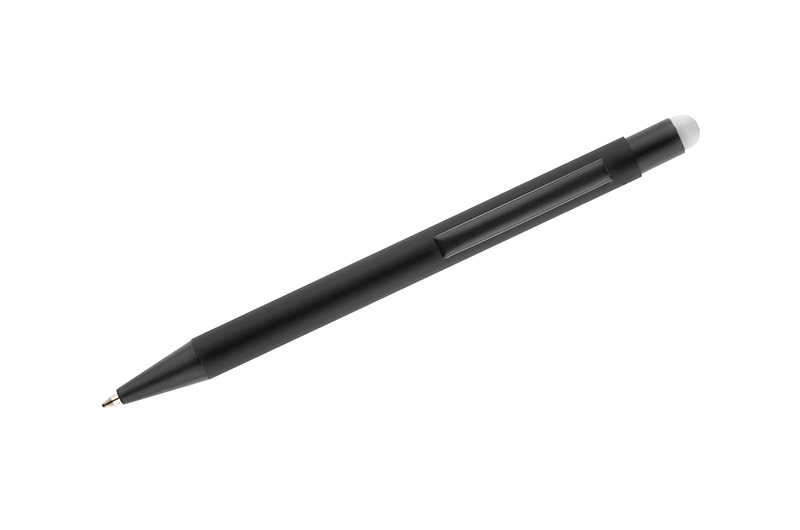 NIRO to długopis z wyjątkowym efektem znakowania. Kolor grawera jest zbliżony do koloru końcówki touch do obsługi ekranów dotykowych. Korpus wykonany z aluminium pokrytego gumowaną powłoką typu soft touch. Wykończenia w kolorze czarnym. Długopis automatyczny. Wkład typu G2 w kolorze niebieskim.