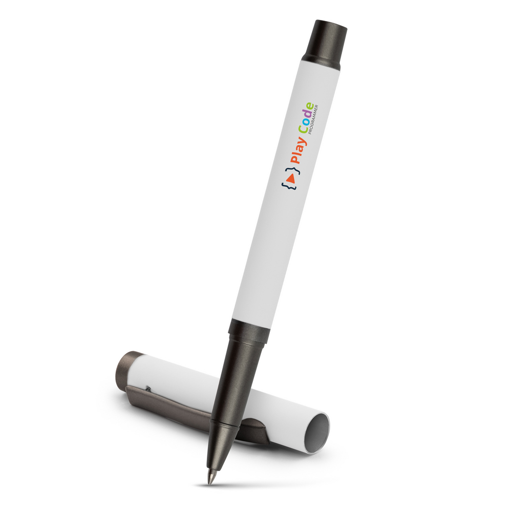 Długopis z gumowanym wykończeniem i dopasowaną kolorystycznie zatyczką z szarym klipem, żelowy wkład 0.7 mm, długość pisania do 500 m