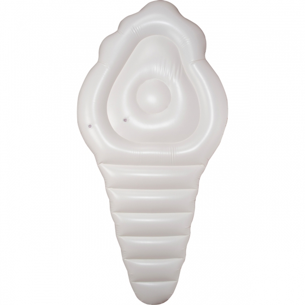 Dmuchany materac w kształcie loda w wafelku, o wymiarach 105 x 18 x 215 cm.