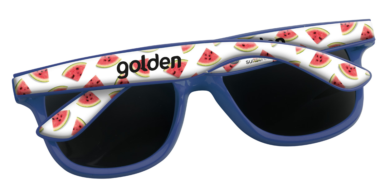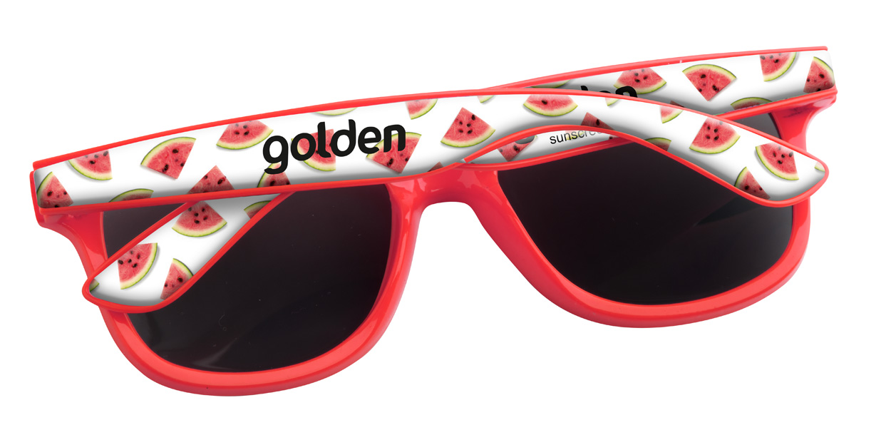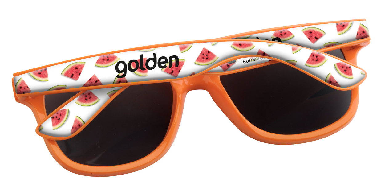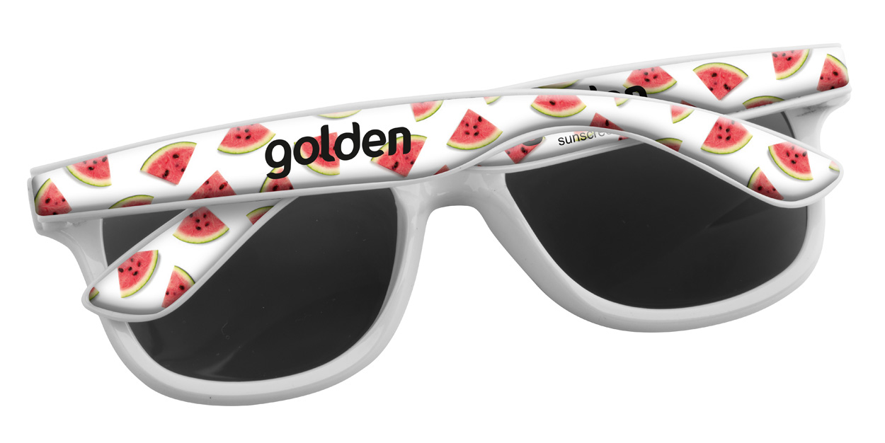 Plastikowe okulary przeciwsłoneczne ze specjalnymi zausznikami do nadruku Epoxy. Posiadają filtr UV 400. Cena zawiera nadruk. Min. Zamówienie: 100szt.