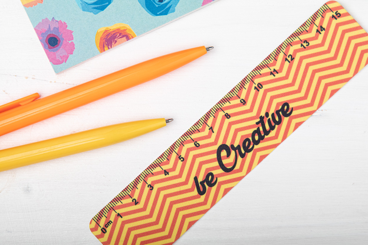Elastyczna plastikowa linijka 15cm z własną grafiką. Cena zawiera nadruk UV LED po jednej stronie. Min. ilość: 100 szt.